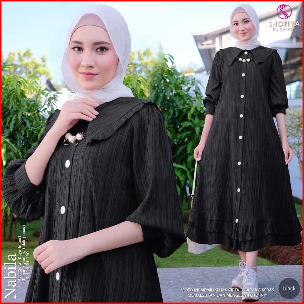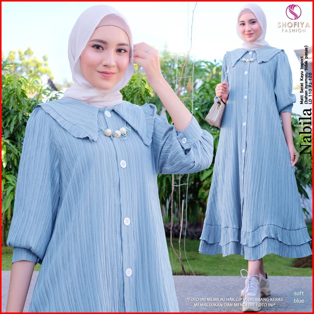 Nabila Gamis Dress Midi Bahan Serat Kayu Import Fashion Remaja Elegan