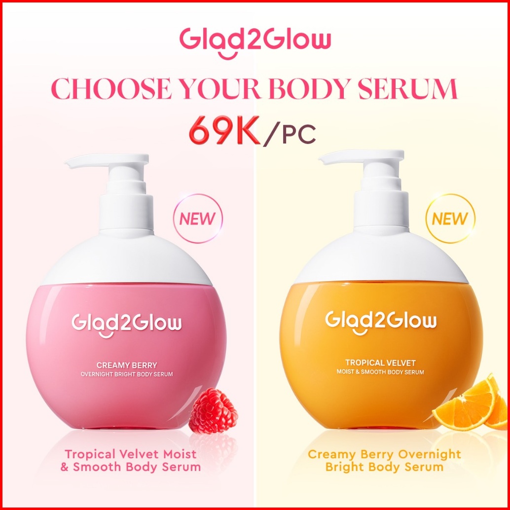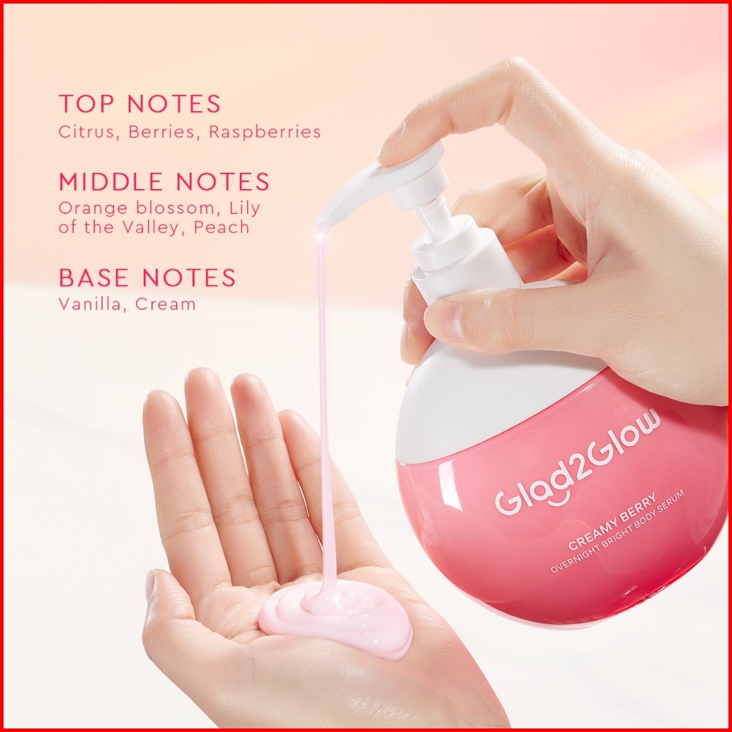 Glad2glow Creamy Berry Overnight Brightening Bright Body Serum 300ml Glad2glow Whitening Body Lotion Body Cream Hand Bod