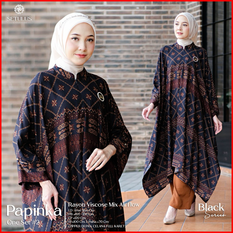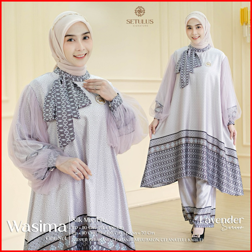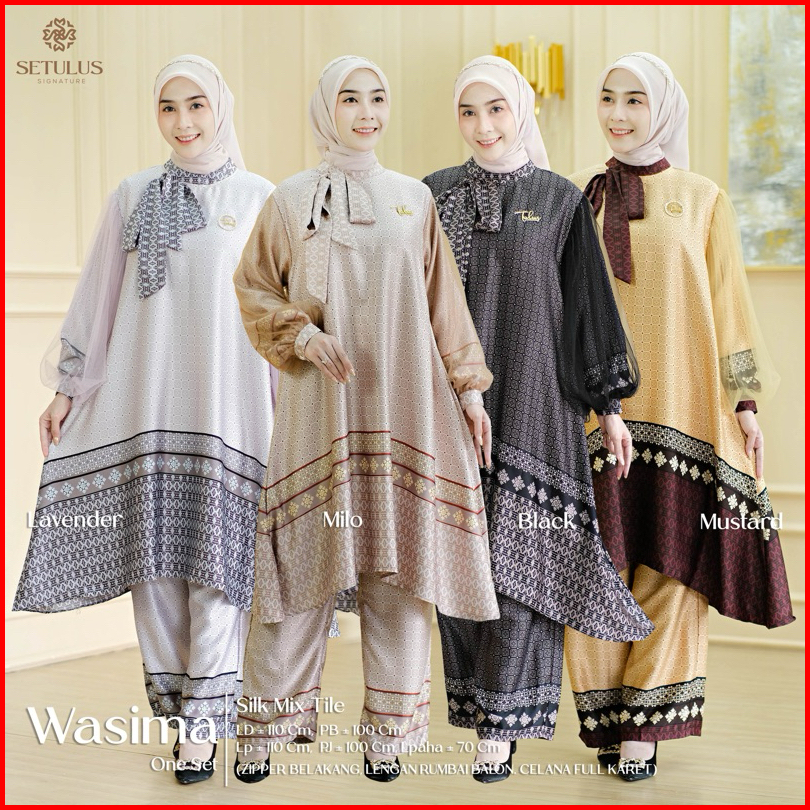Vican Tulus Signature - Wasima Papinka Afora Meilo One Set Kode1 Setelan Tunik Celana Motif Garis Wanita Bahan Silk Crin