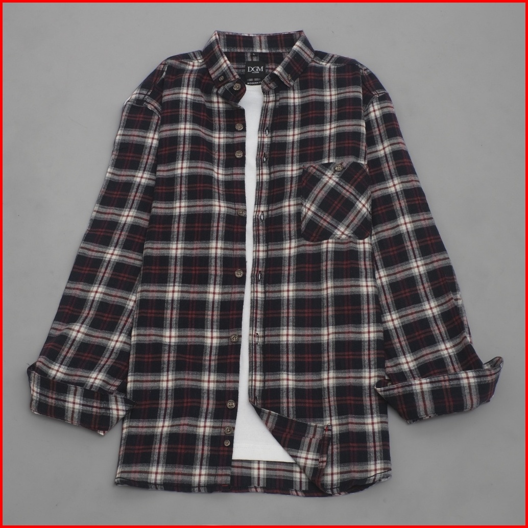 Dgm Kemeja Pria Lengan Panjang Kotak Kotak Flanel 1100