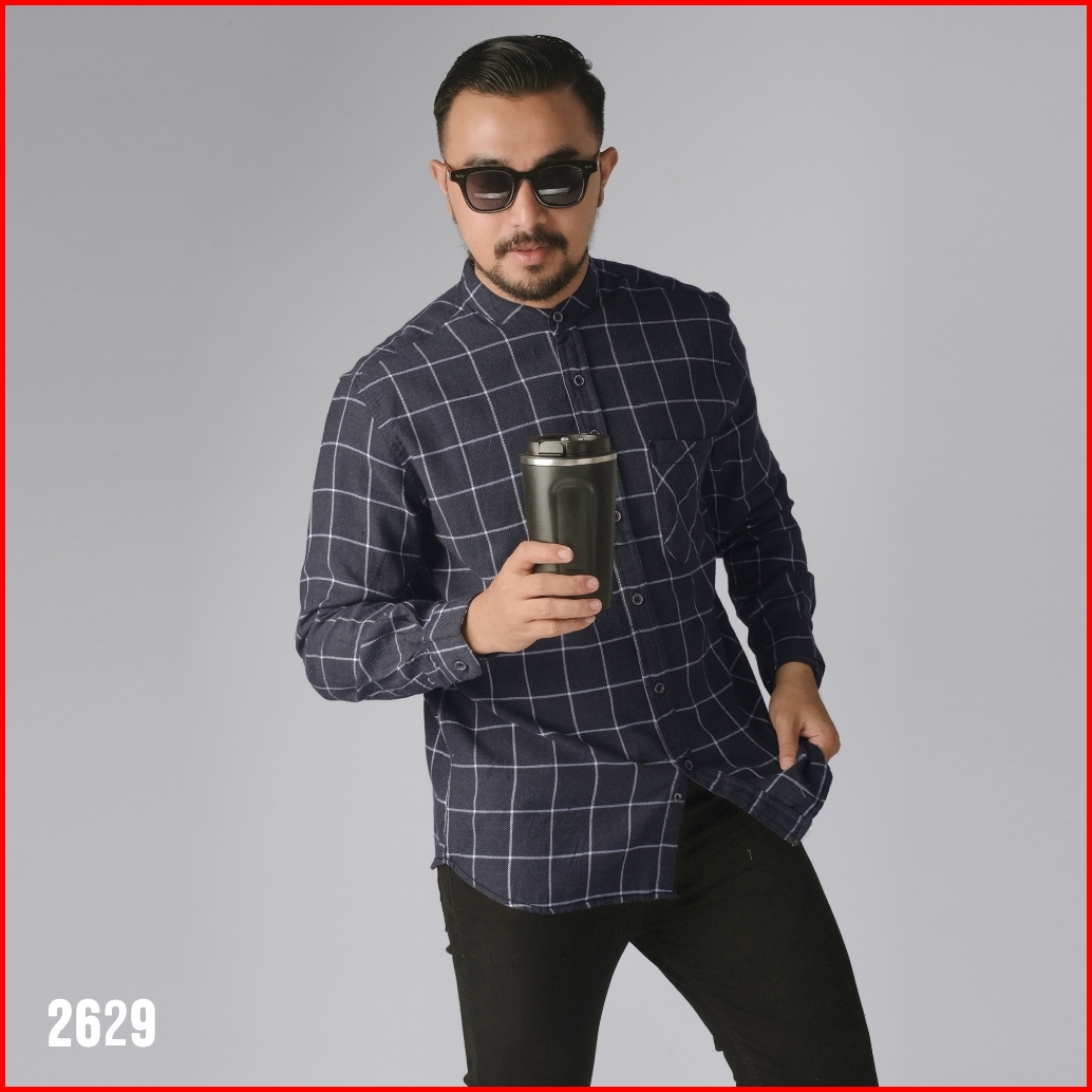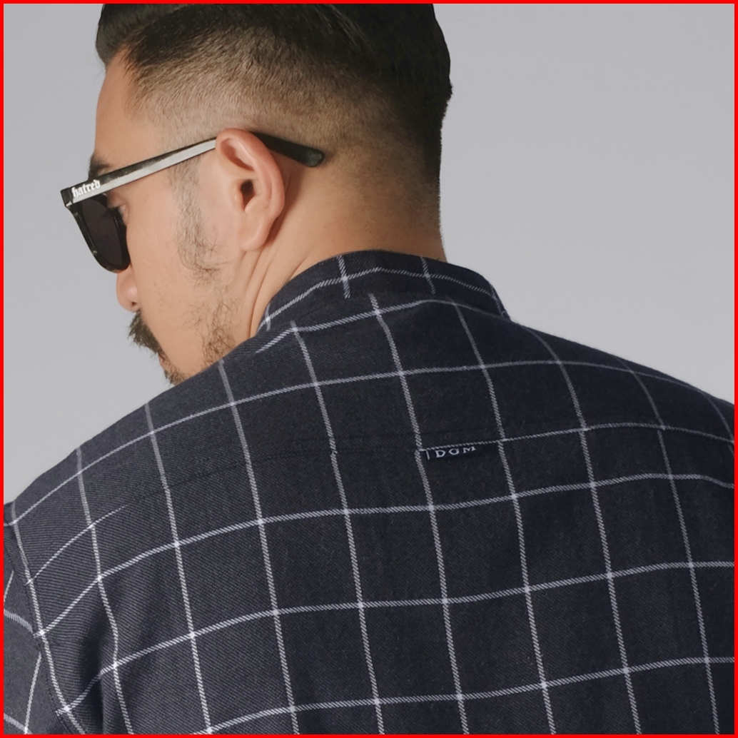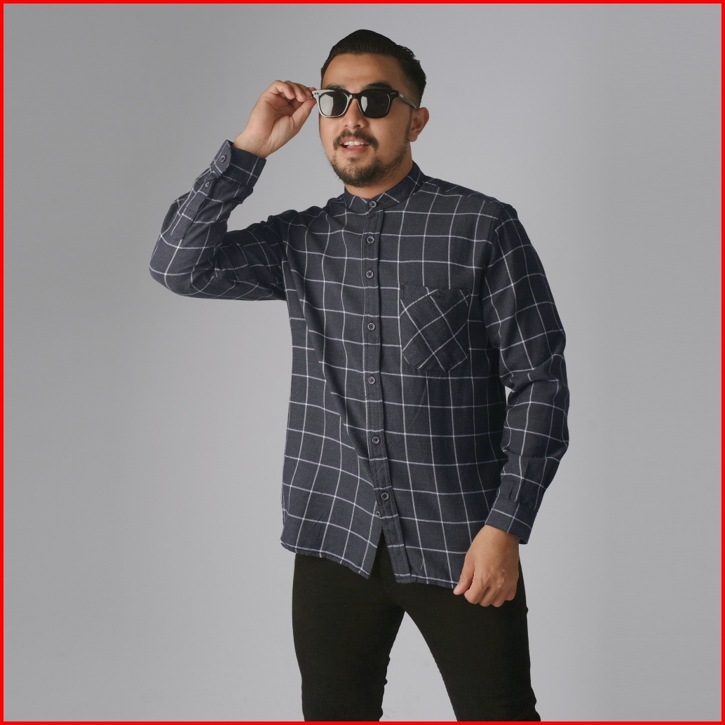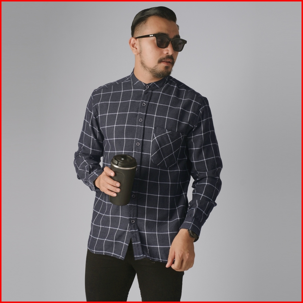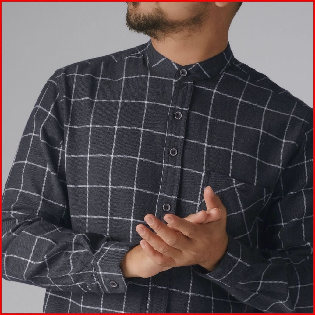 Dgm Kemeja Pria Flanel Kerah Sanghai Koko Lengan Panjang Premium Kemeja Koko Abu Tua 2629