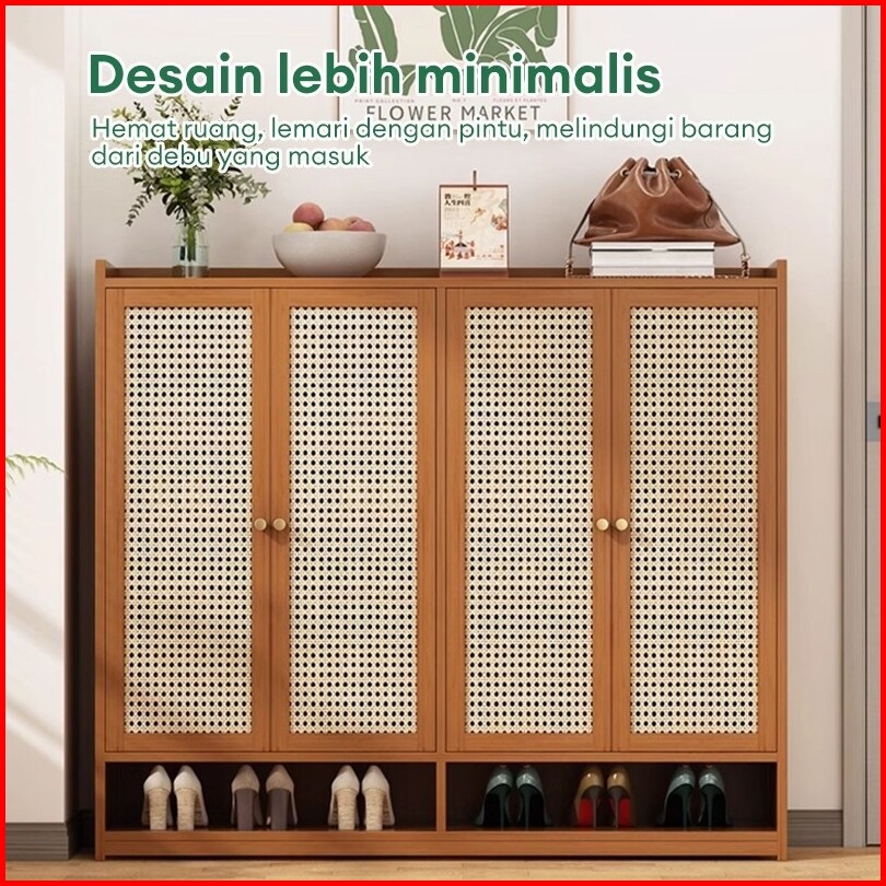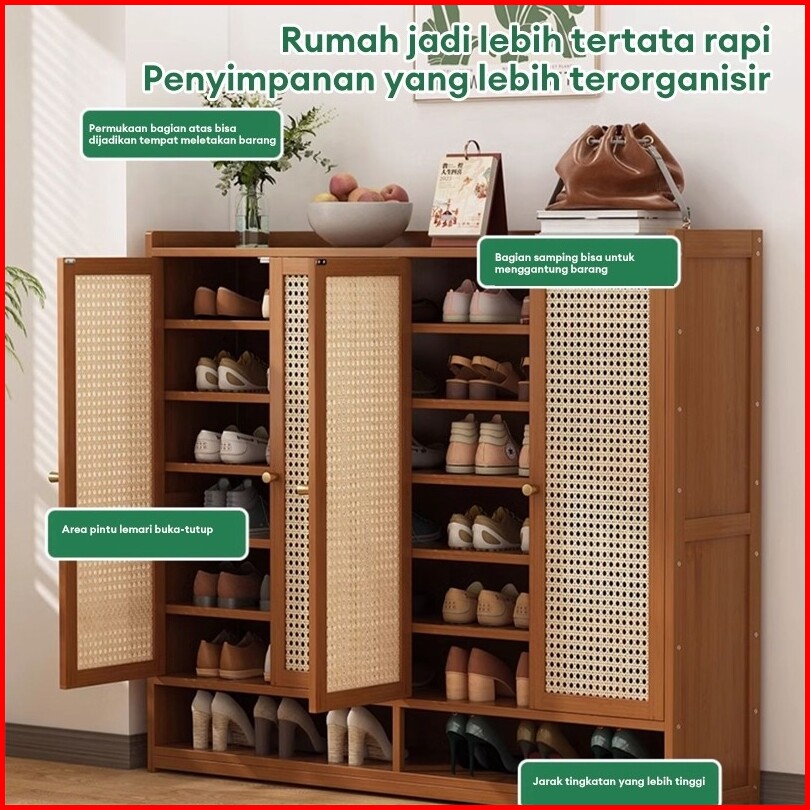 Alami Rak Sepatu Susun Tertutup Lemari Sepatu Aesthetic Minimalis Rak Sepatu Rak Sepatu Rotan