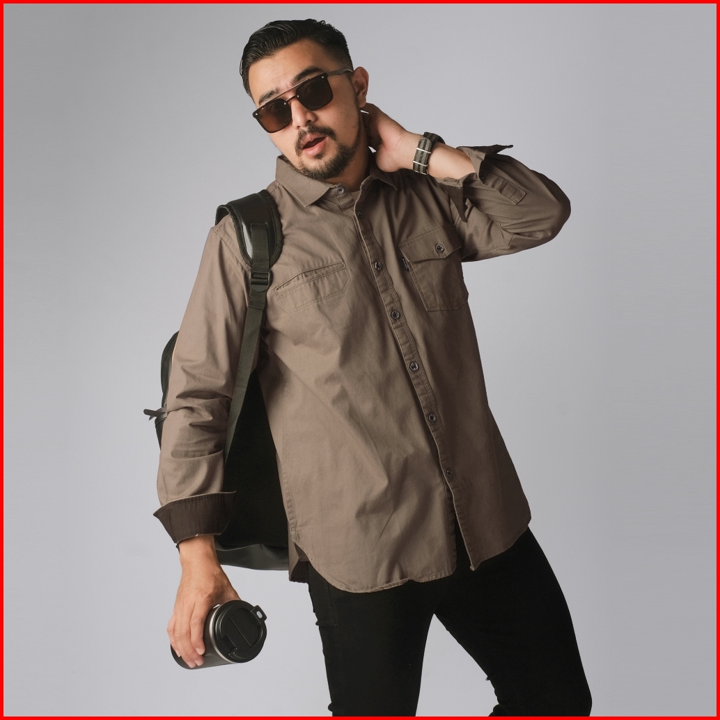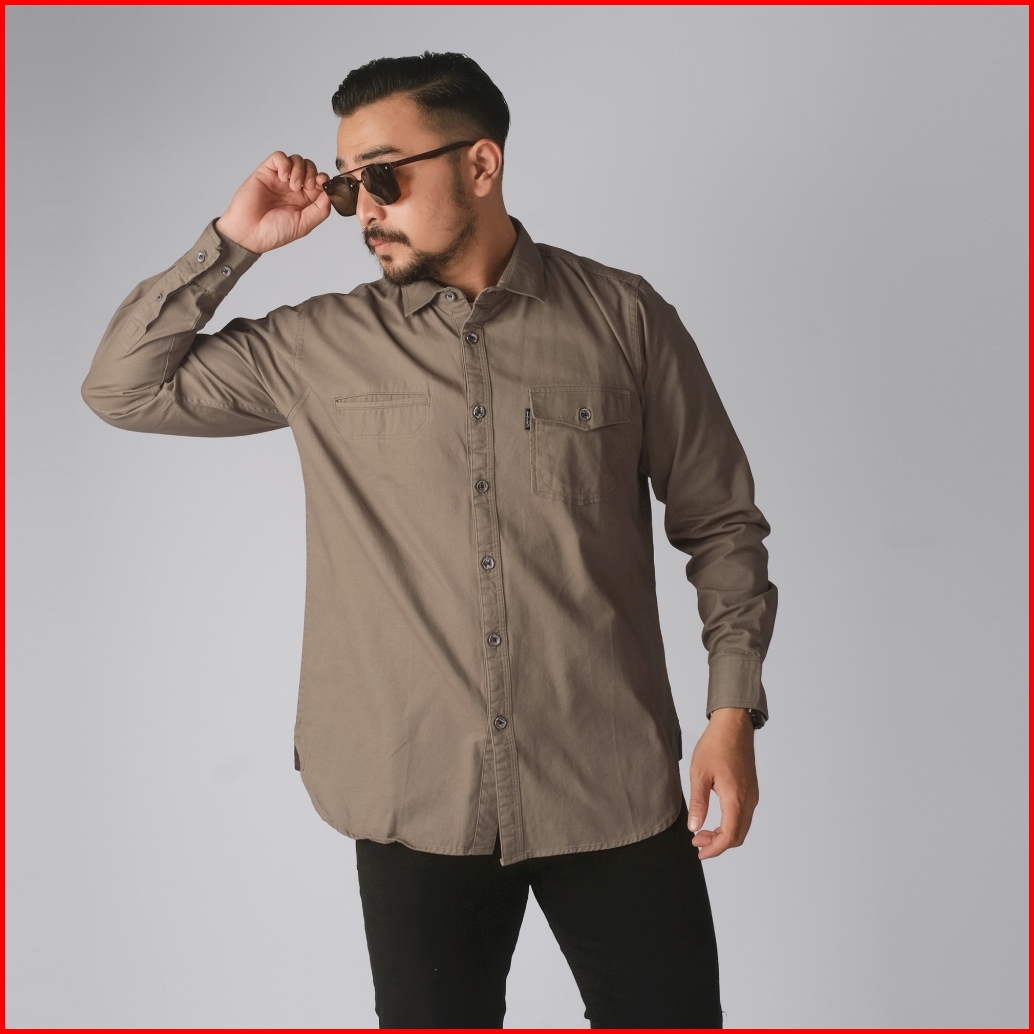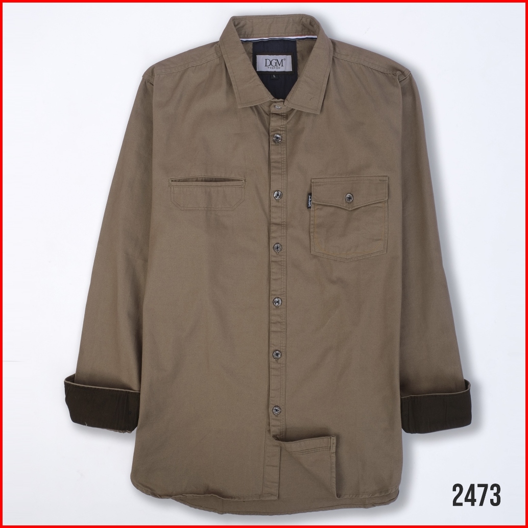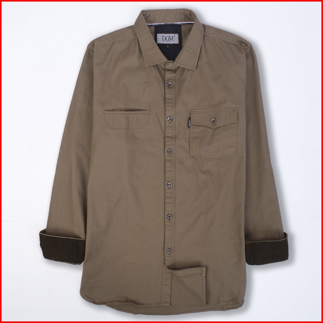 Dgm Workshirt Kemeja Kerja Katun Twill 30s Premium Lengan Panjang Double Pocket Kemeja Pria Coklat Carob Alaska 2473