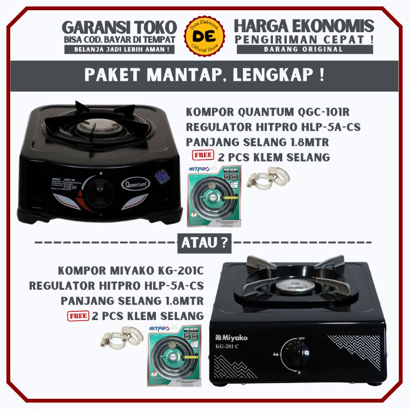 FREE ONGKIR Paket Kompor Gas 1 Tungku bonus selang regulator gas Hitpro 5ACS / Kompor Gas Quantum QGC-101R / Miyako KG20