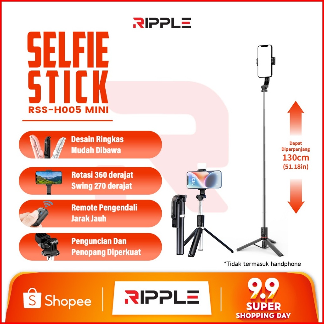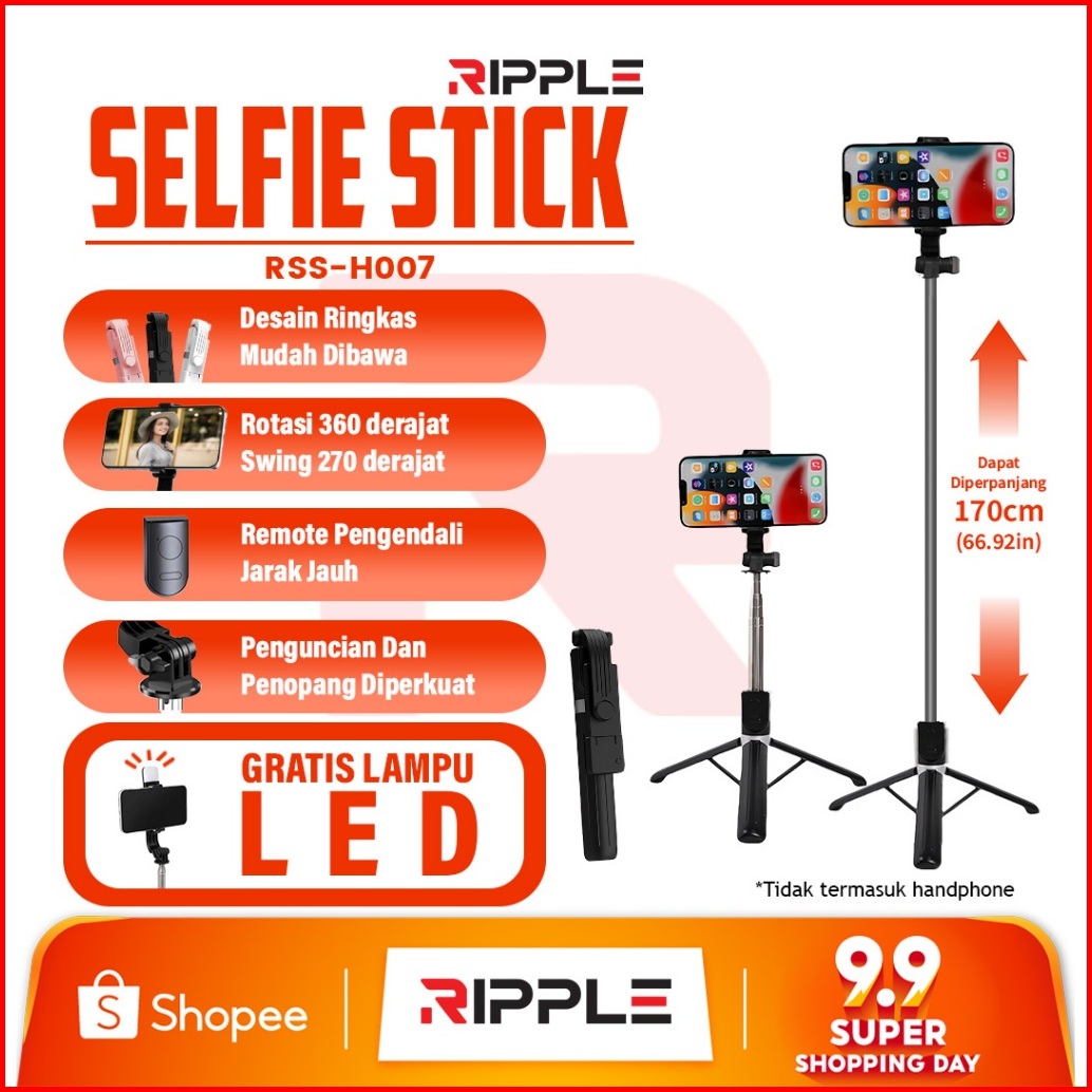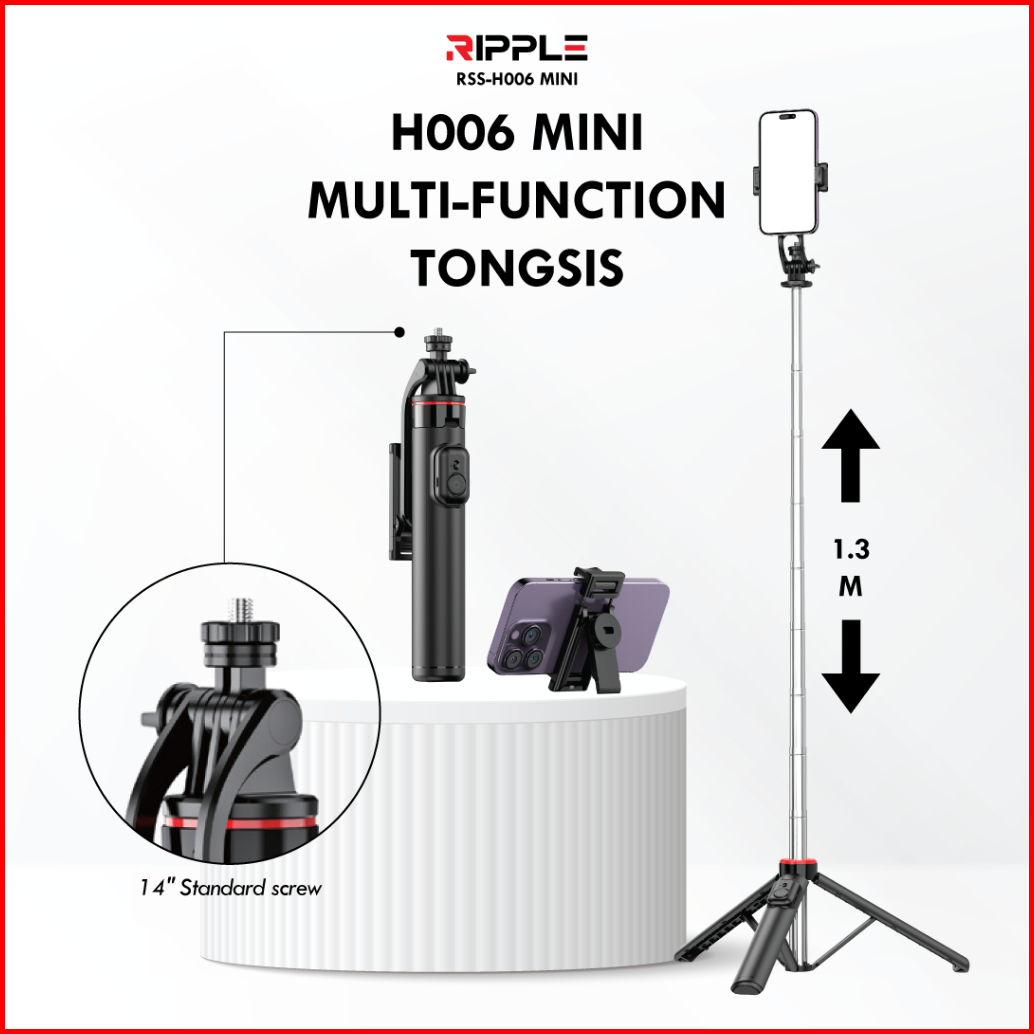 Ripple Selfie Stick H006 H007 Mini 1.3m 1.7m Tongsis Bluetooth Detachable Mount Tripods Anti Shake