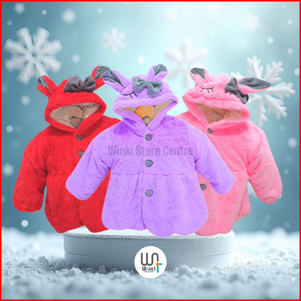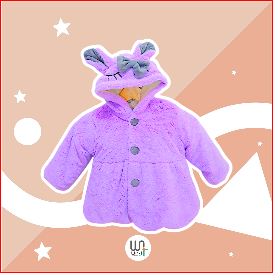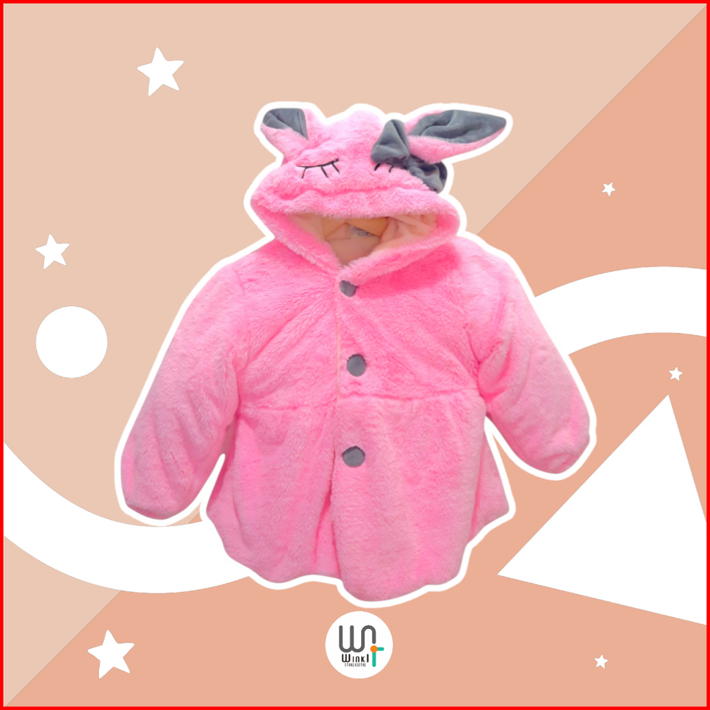 Jaket Bulu Mantel Anak Perempuan Hoodie Import Motif Rabbit