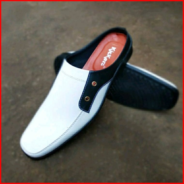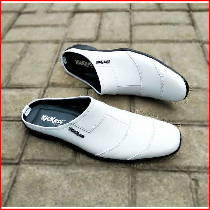 Slop Bustong Cowo Kickers Putih Hitam Anti Slip
