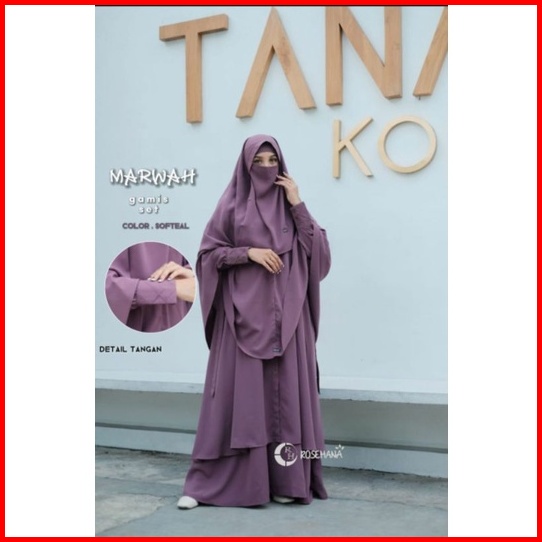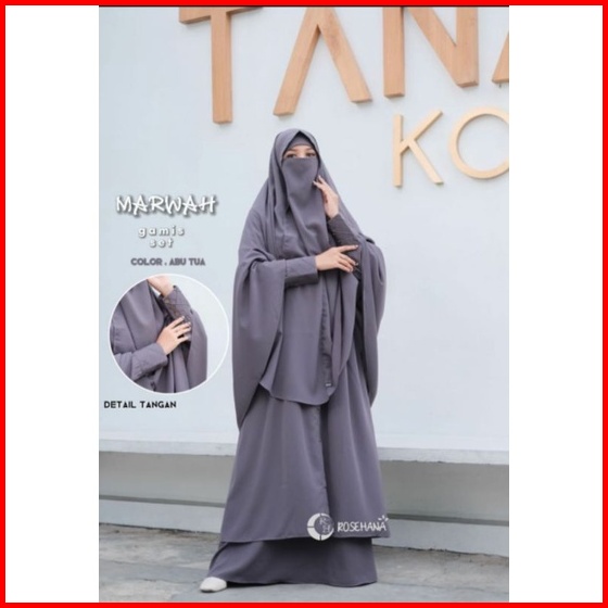 Setelan Gamis Umroh Haji Set Khimar Cadar Marwah Syari Ori Rosehana Polos Simpel Jumbo Gamis Semi Tunik Original Terbaru