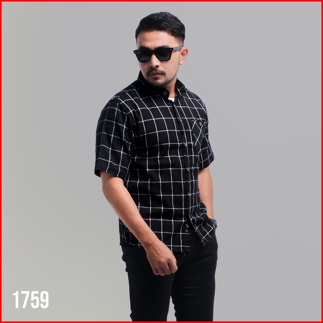 Dgm Kemeja Pria Lengan Pendek Flanel Casual 1759