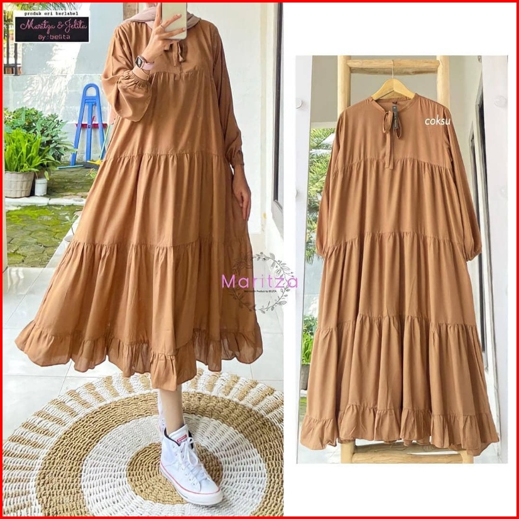 New Rachel Midi Dress Long Tunik Wanita Terbaru Gamis Polos Murah Ootd Muslim Jumbo Gso