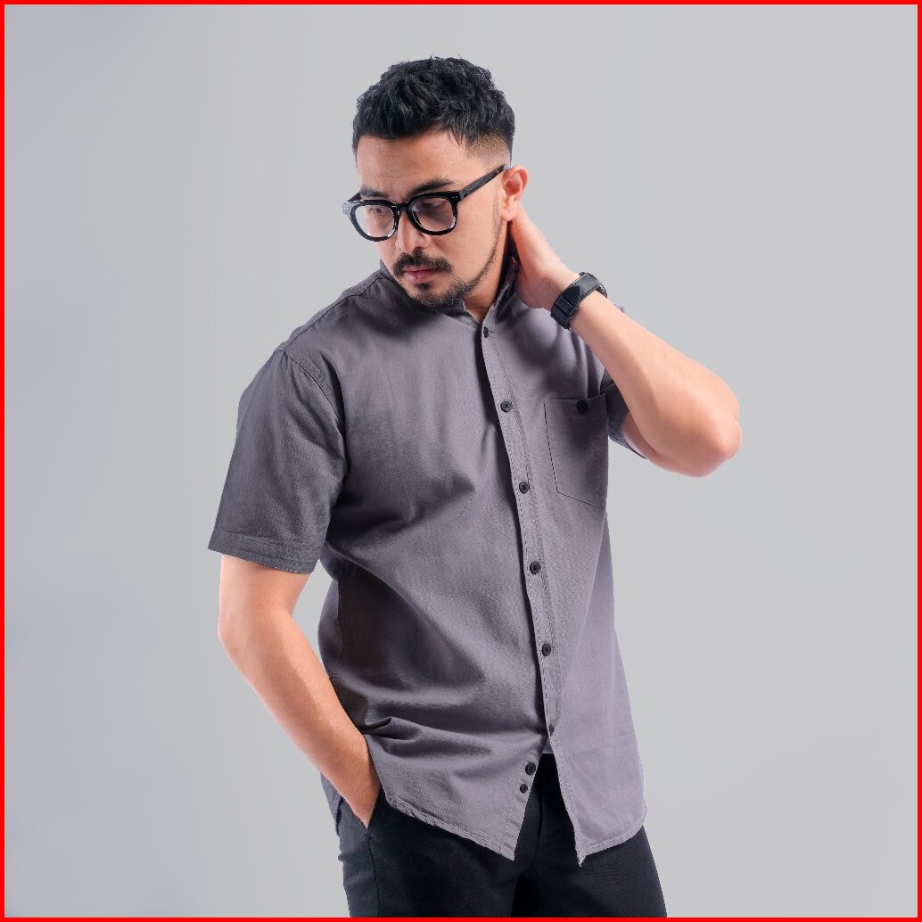 Dgm Kemeja Pria Basic Polos Pendek Grey Premium 1013
