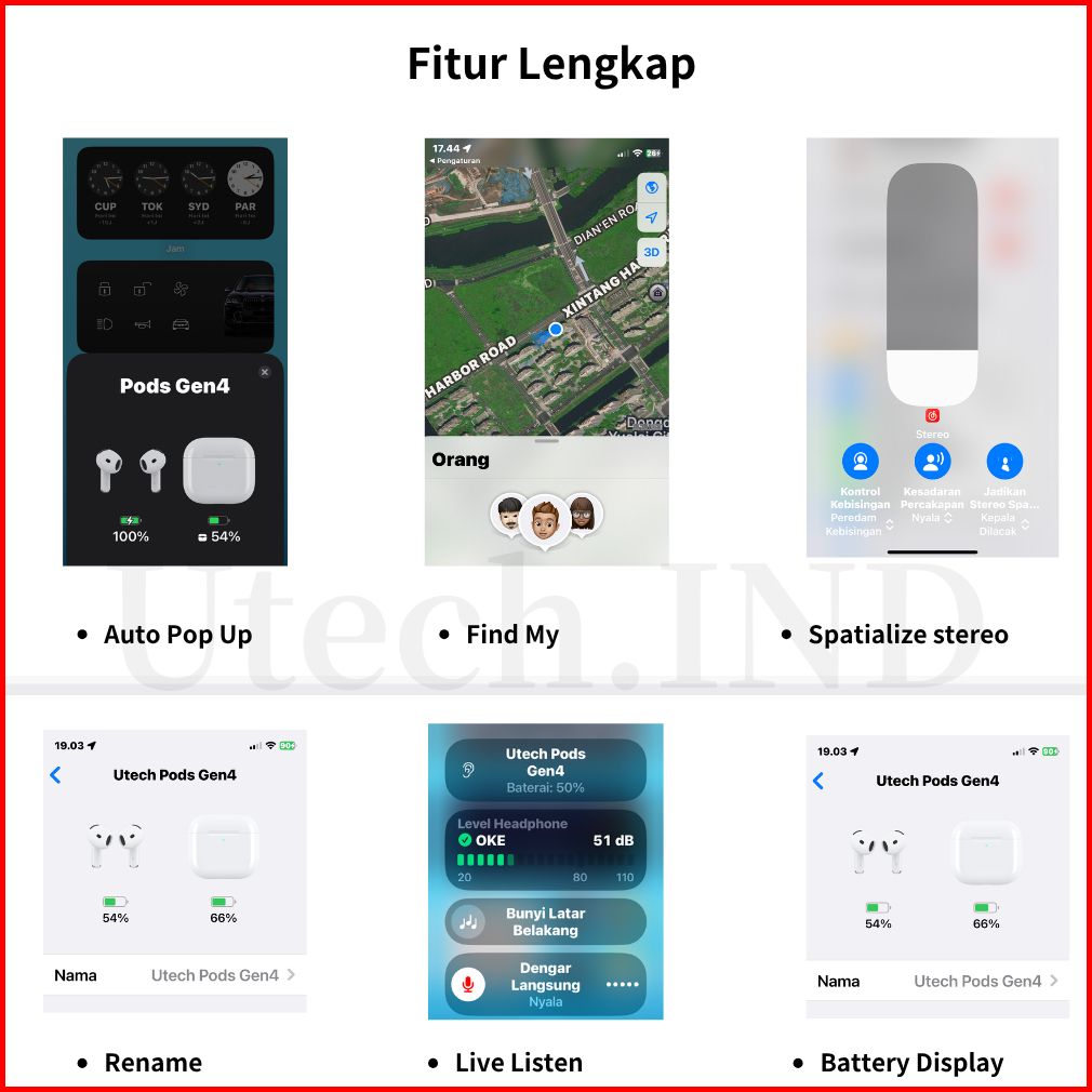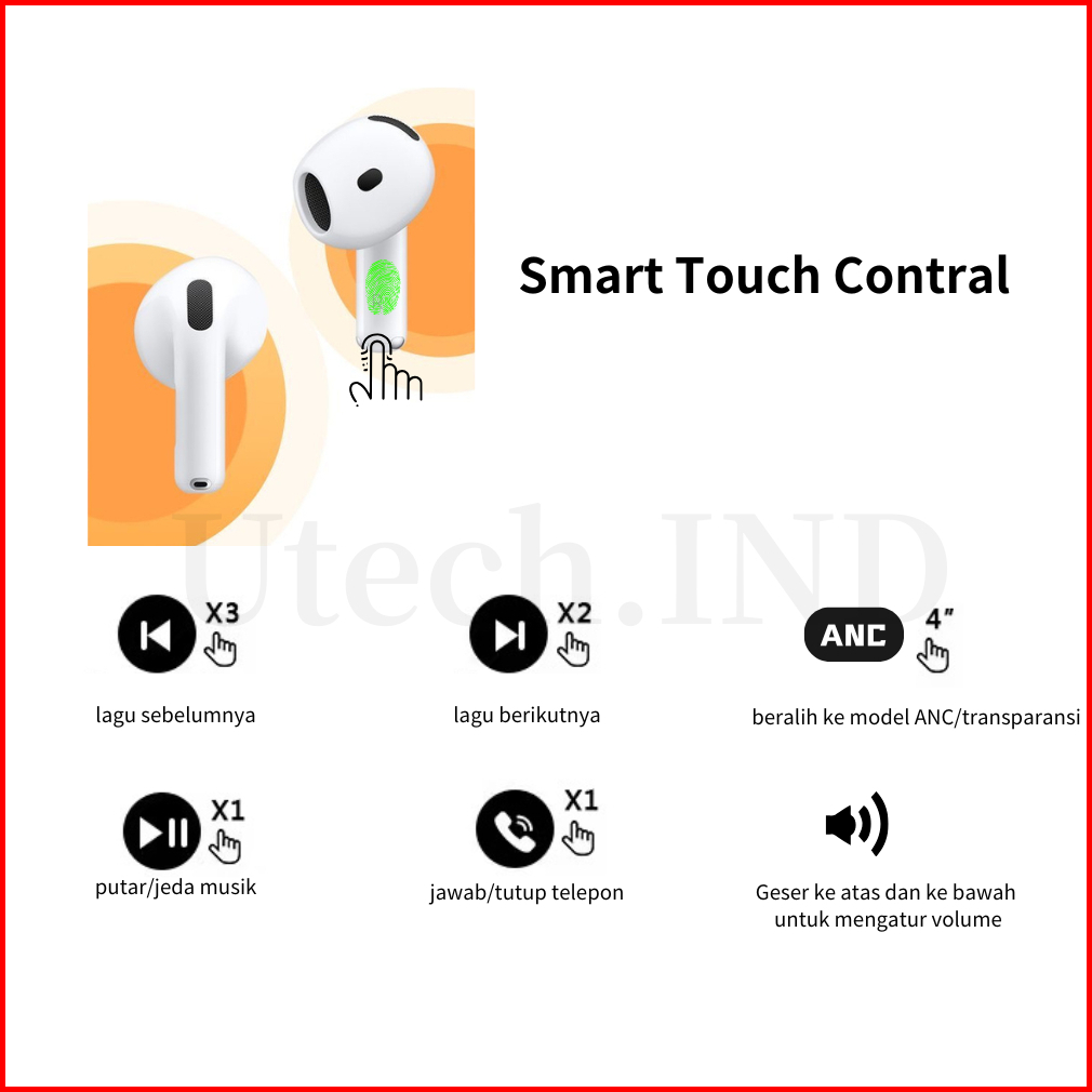 Utech Tws Bluetooth Gen4 Active Noise Cancellation Headset Bluetooth Full Bass Headphone Gaming Dengan Kualitas Suara Do