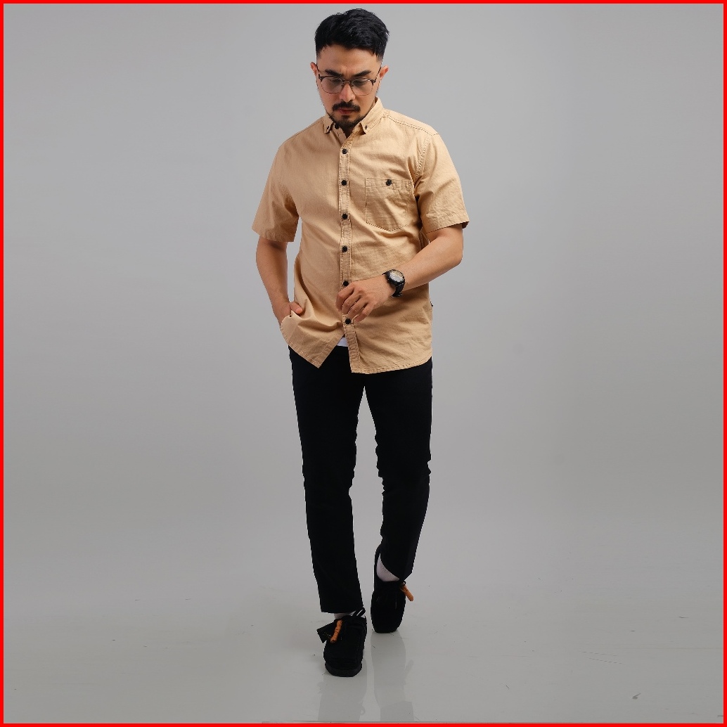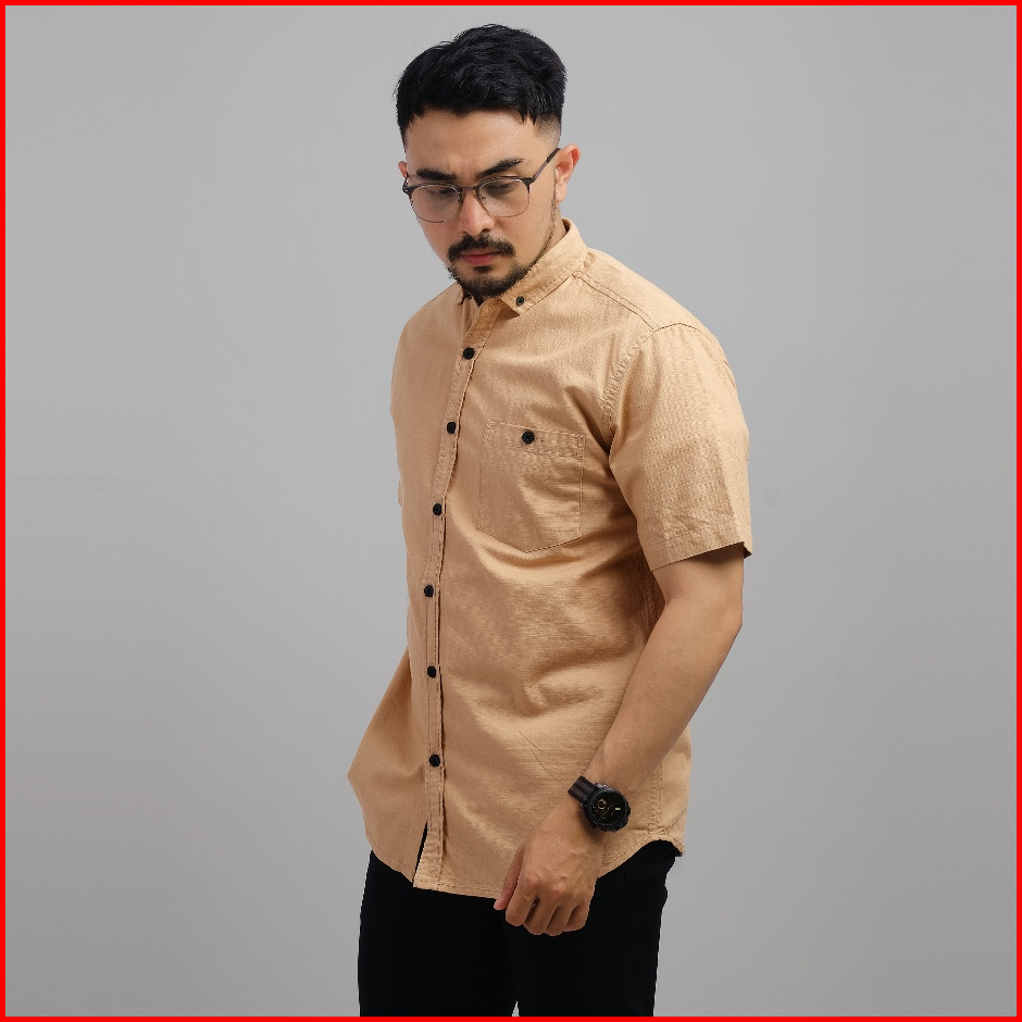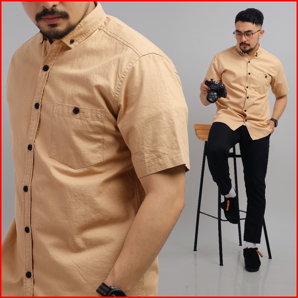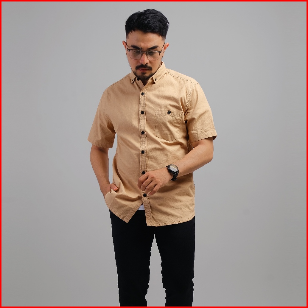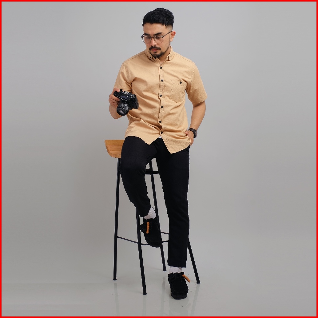 Dgm Kemeja Pria Basic Polos Lengan Pendek Cream 1009