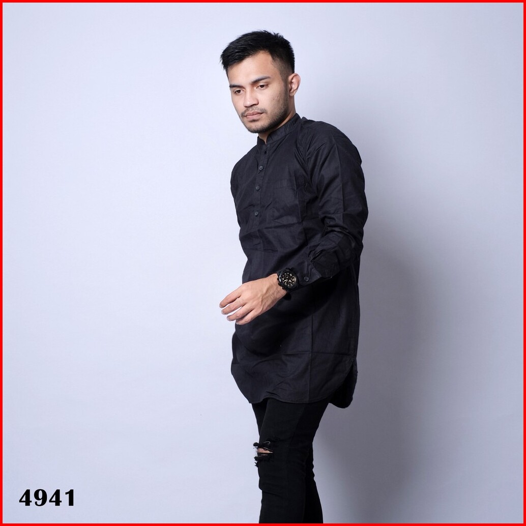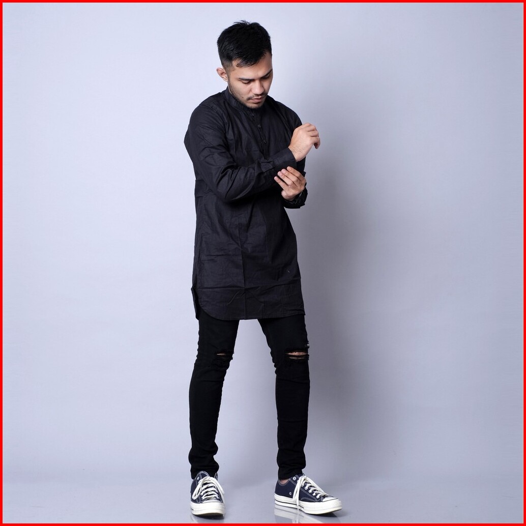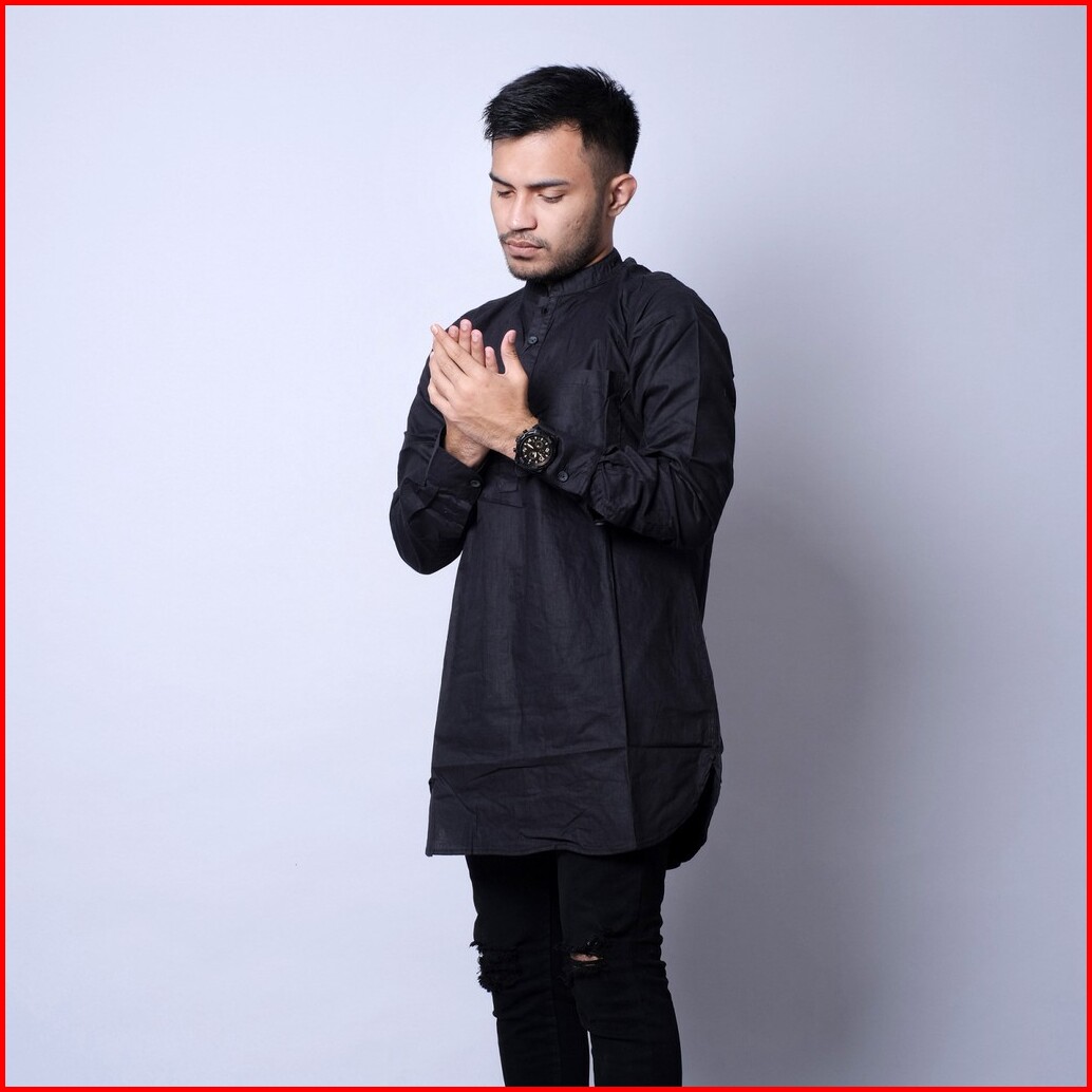 Dgm Fashion Kemeja Kurta Hitam Polos Premium Kurta Polos Pria Kurta Panjang Pria 4941