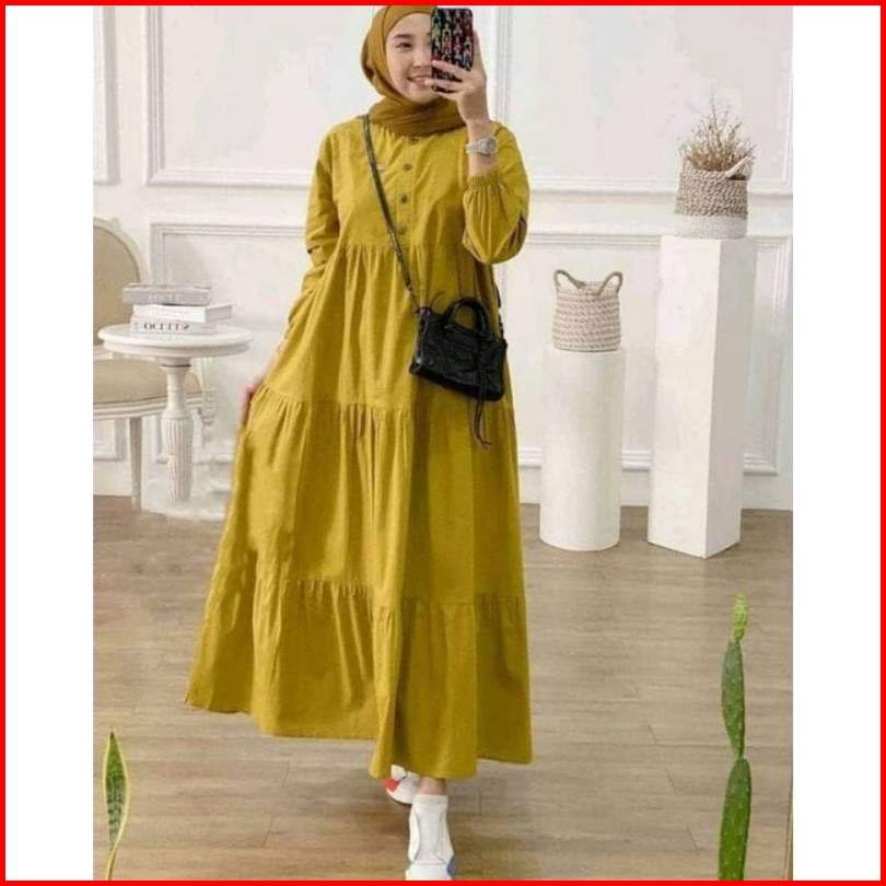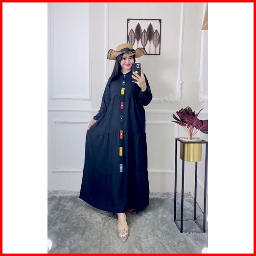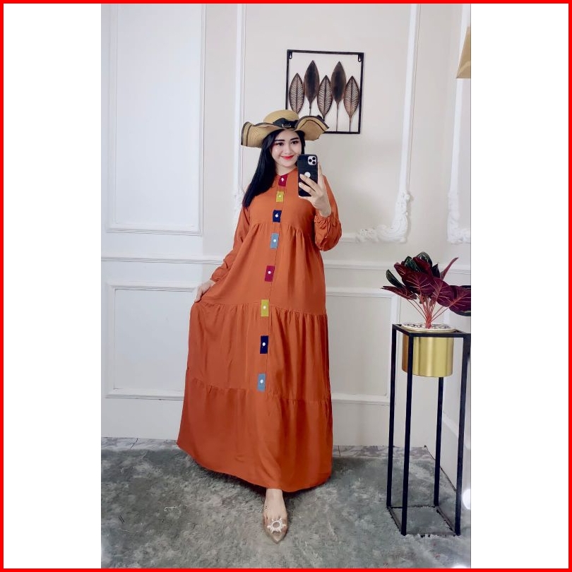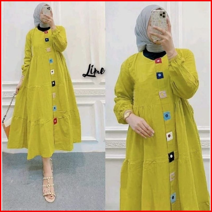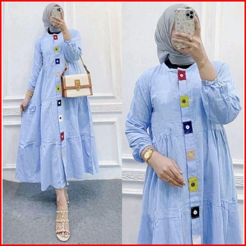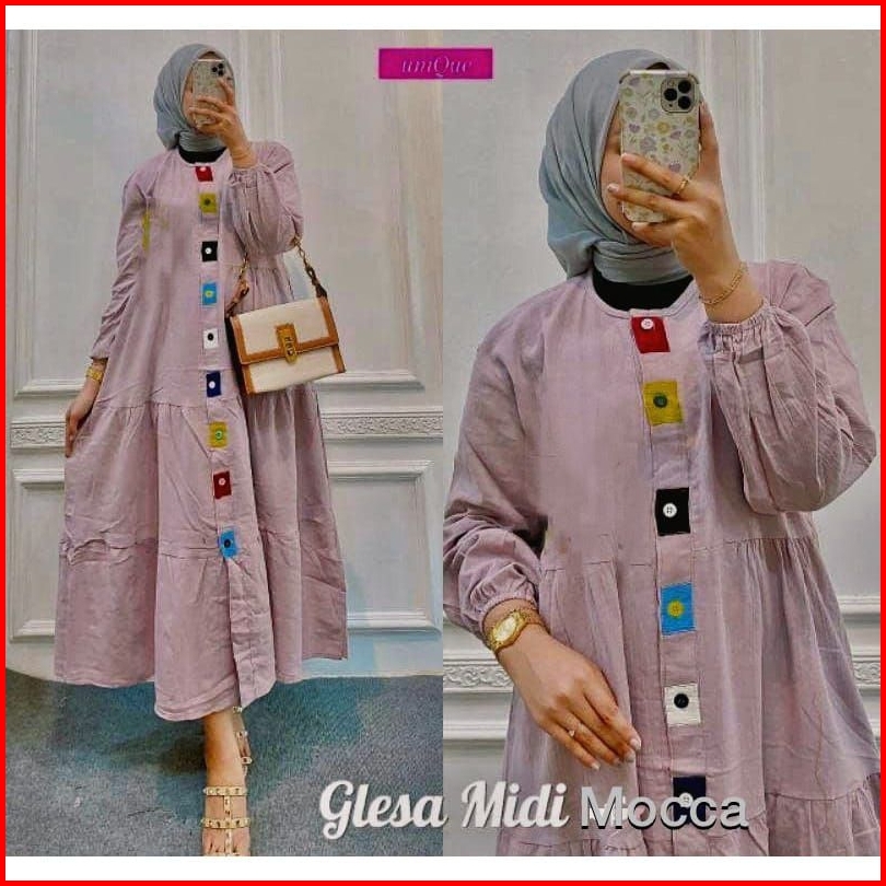 Glessa Midi Dress Terbaru Mididressusun Kancing Pelangi Viral Gamis Rayon Terlaris