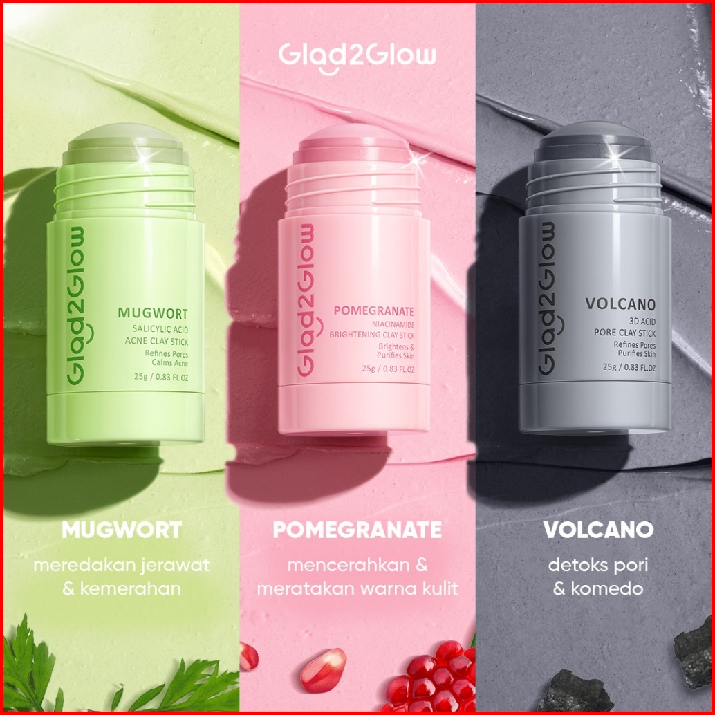 Masker Glad2glow Volcano 3d Acid Pore Clay Stick 25g Glad2glow Brightening Clay Stick 25g Masker Wajah Masker Komedo Pem
