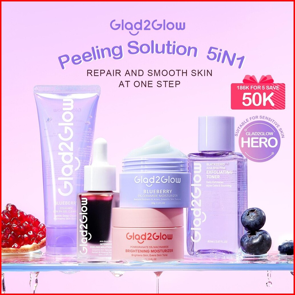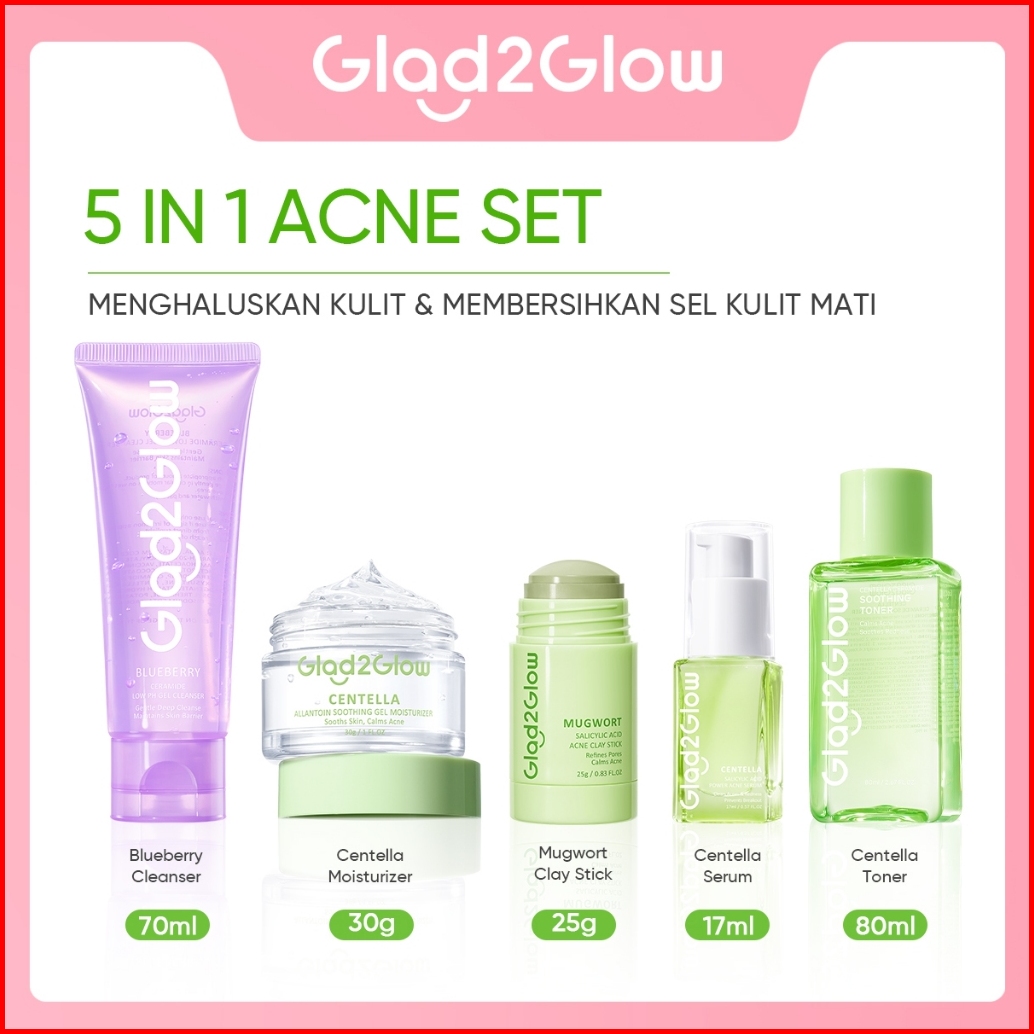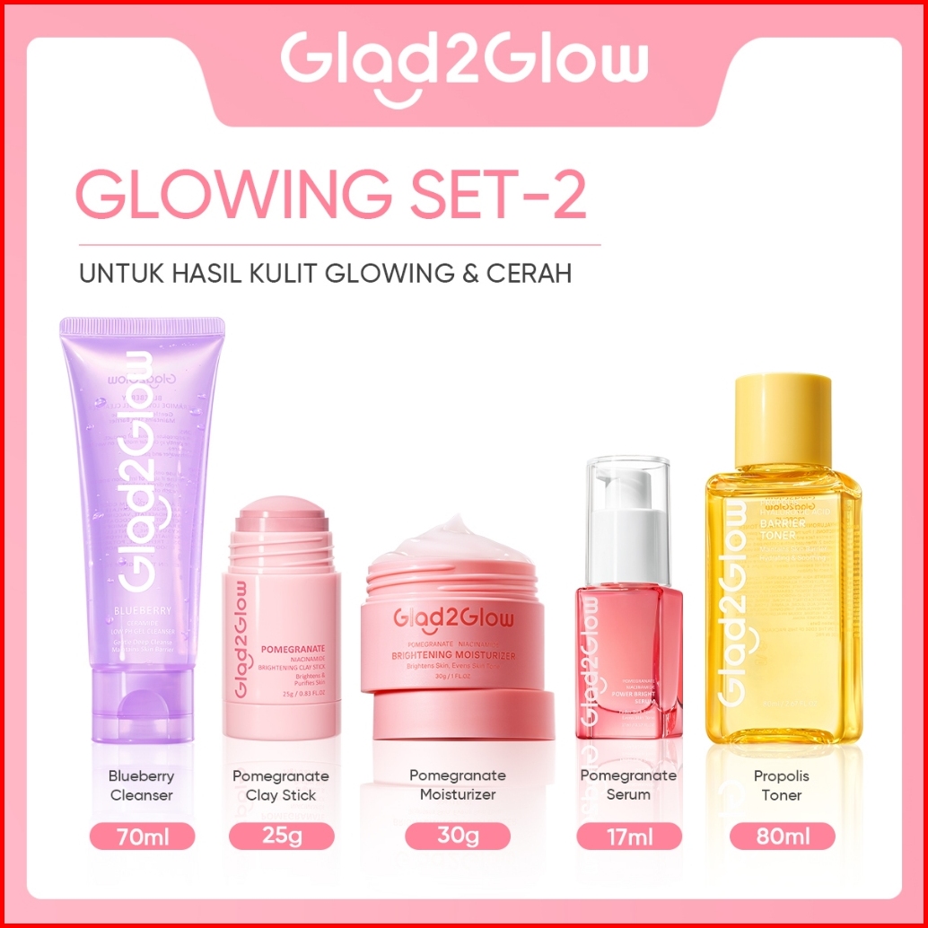 Glad2glow Paket 5pcs Set With Brightening Cleanser Clay Stick Toner Serum Moisturizer Serum Wajah Pelembab Wajah