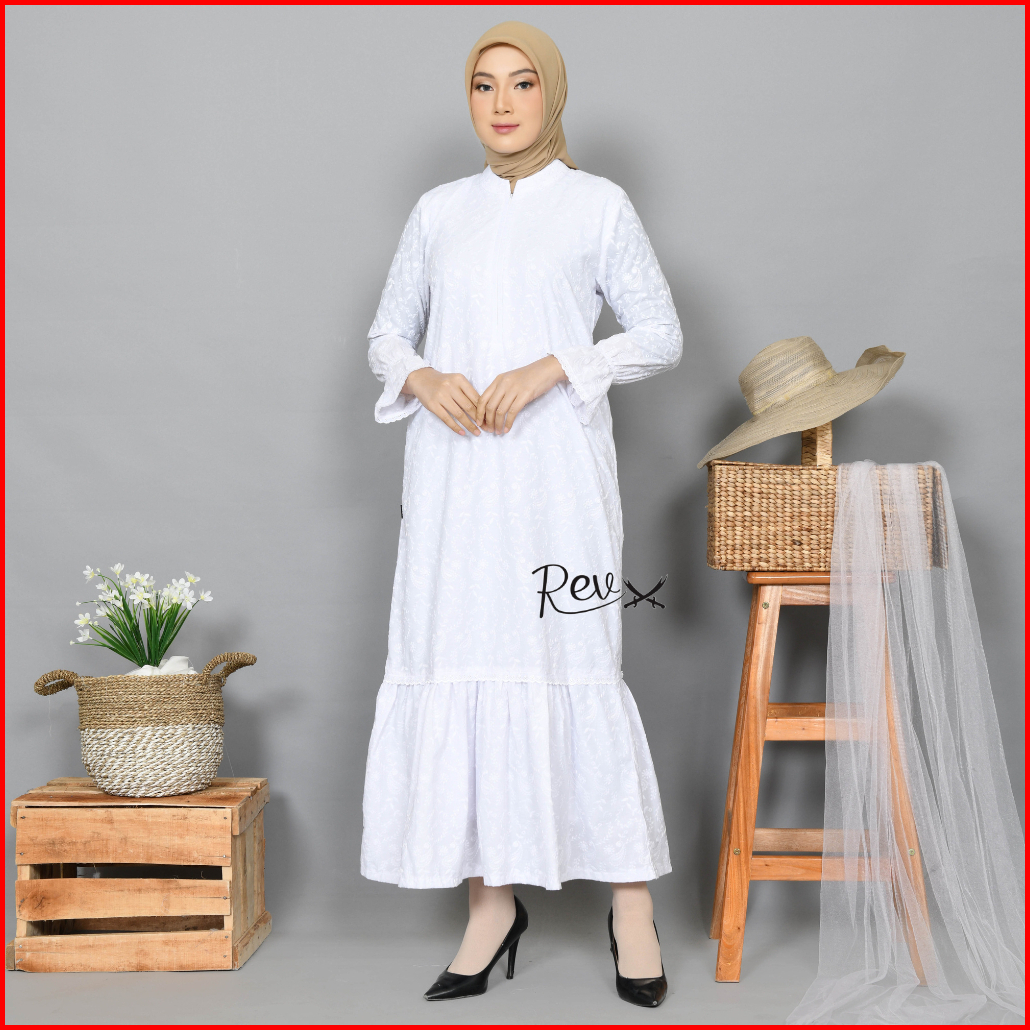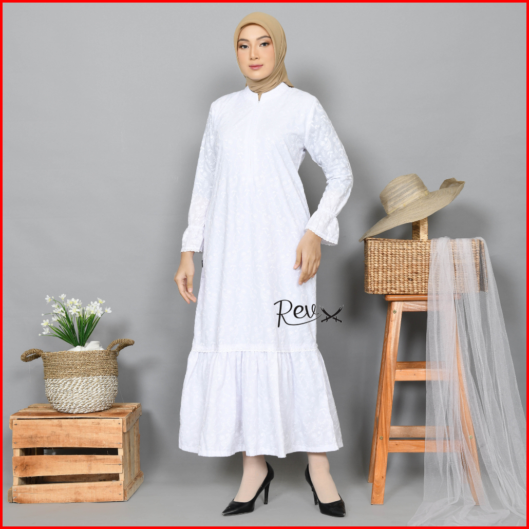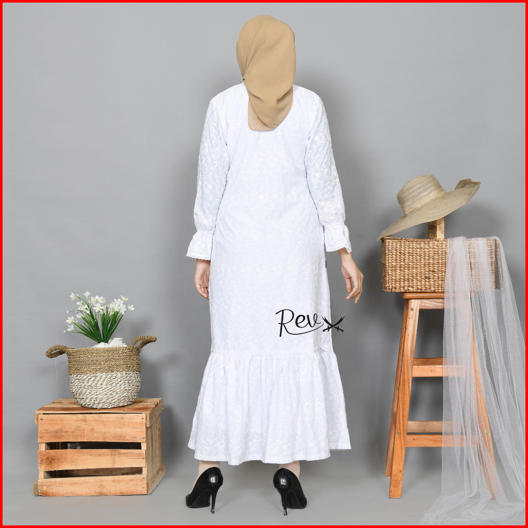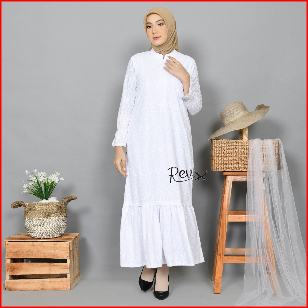 Gamis Umroh Wanita Putih Katun Full Bordir Rempel Busana Muslimah