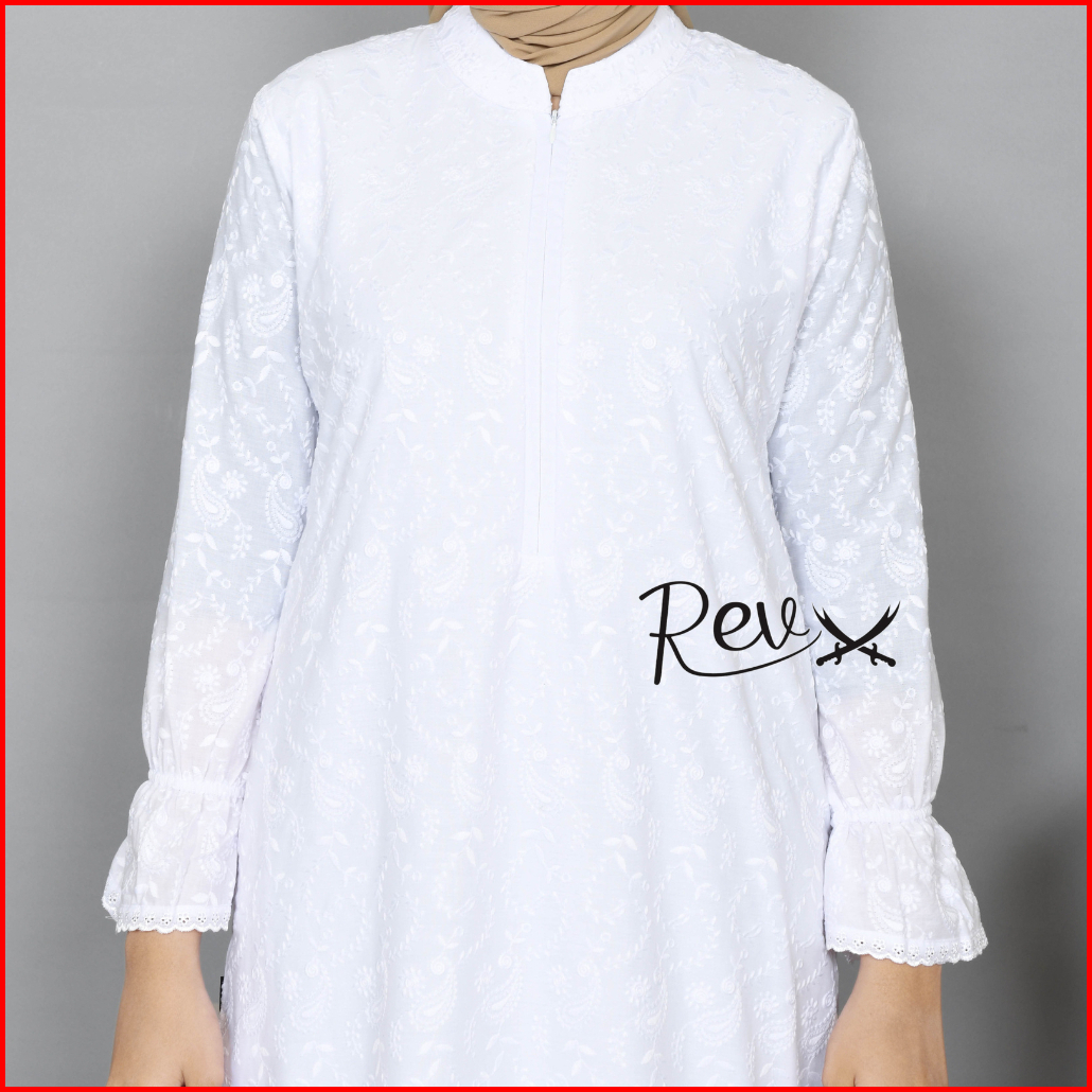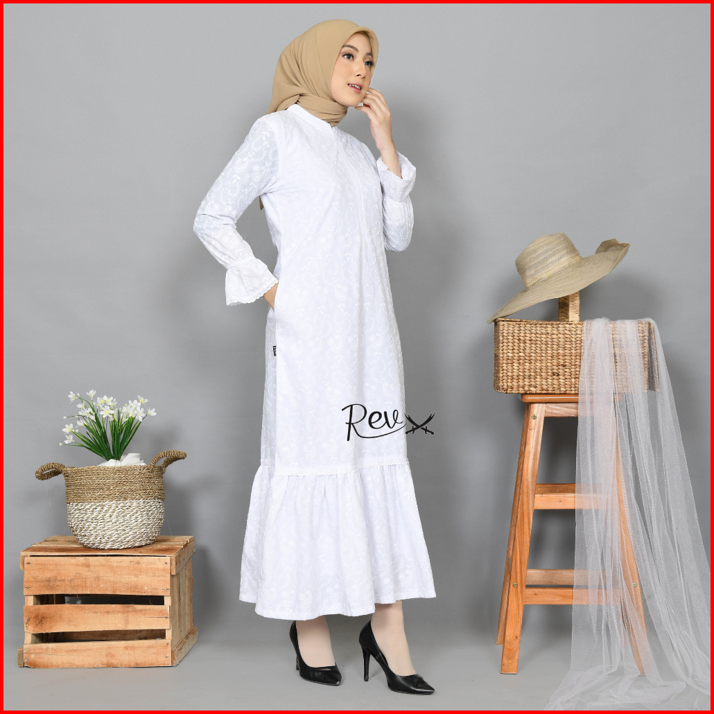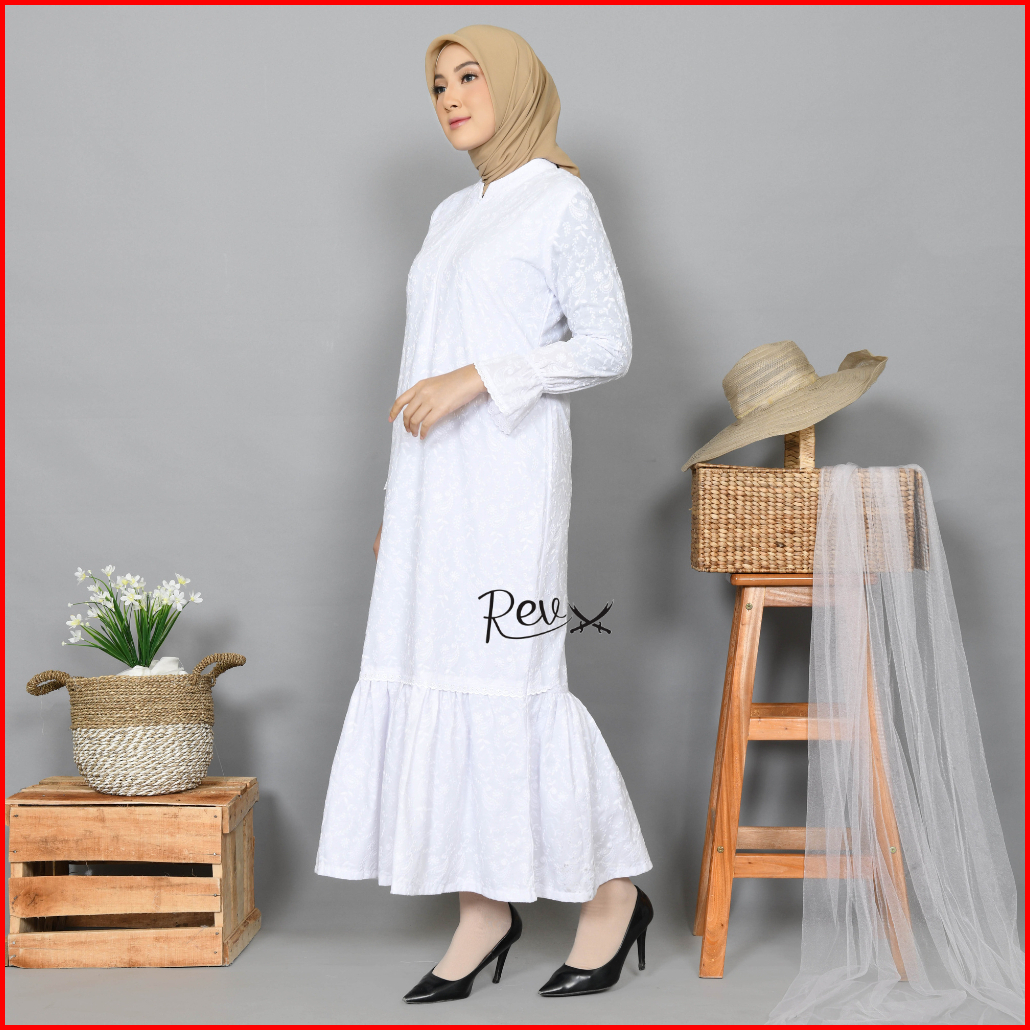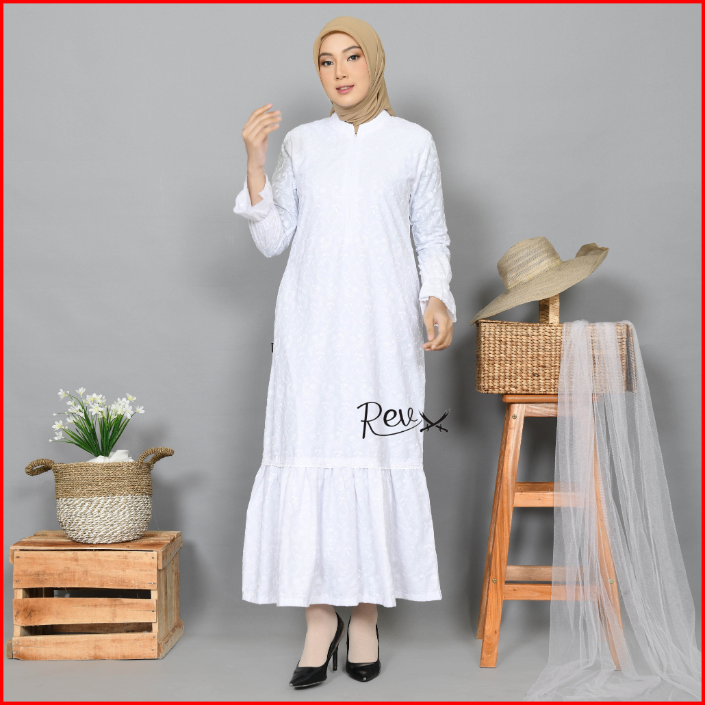 Gamis Umroh Wanita Putih Katun Full Bordir Rempel Busana Muslimah