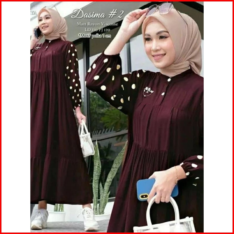 Dasima Gamis Gamis Midi Bahan Rayon Motif Polkadot Gamis Murah