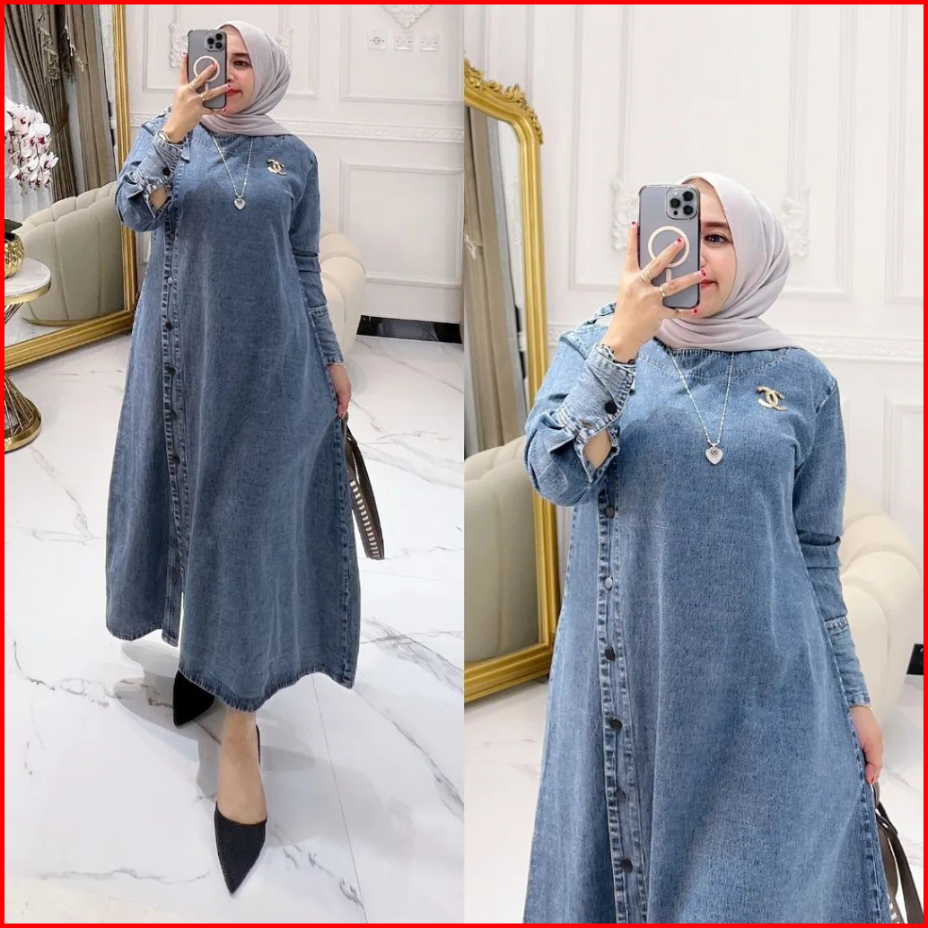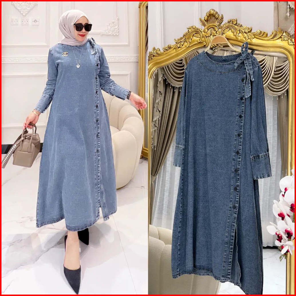 Gamis Terbaru Syafina Midi Dress Midi Dress Wanita Terlaris Matt Jeans Premium Dress Wanita Murah Kekinian