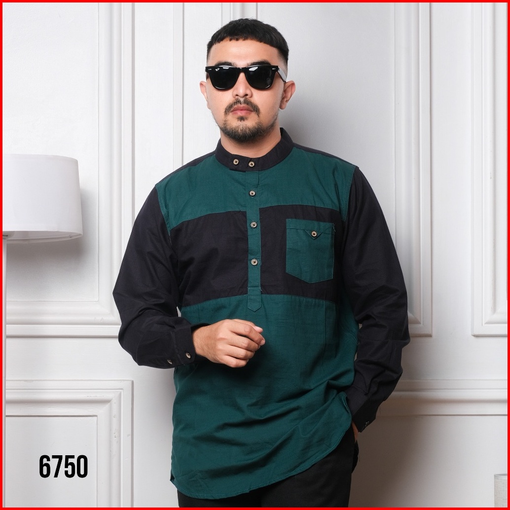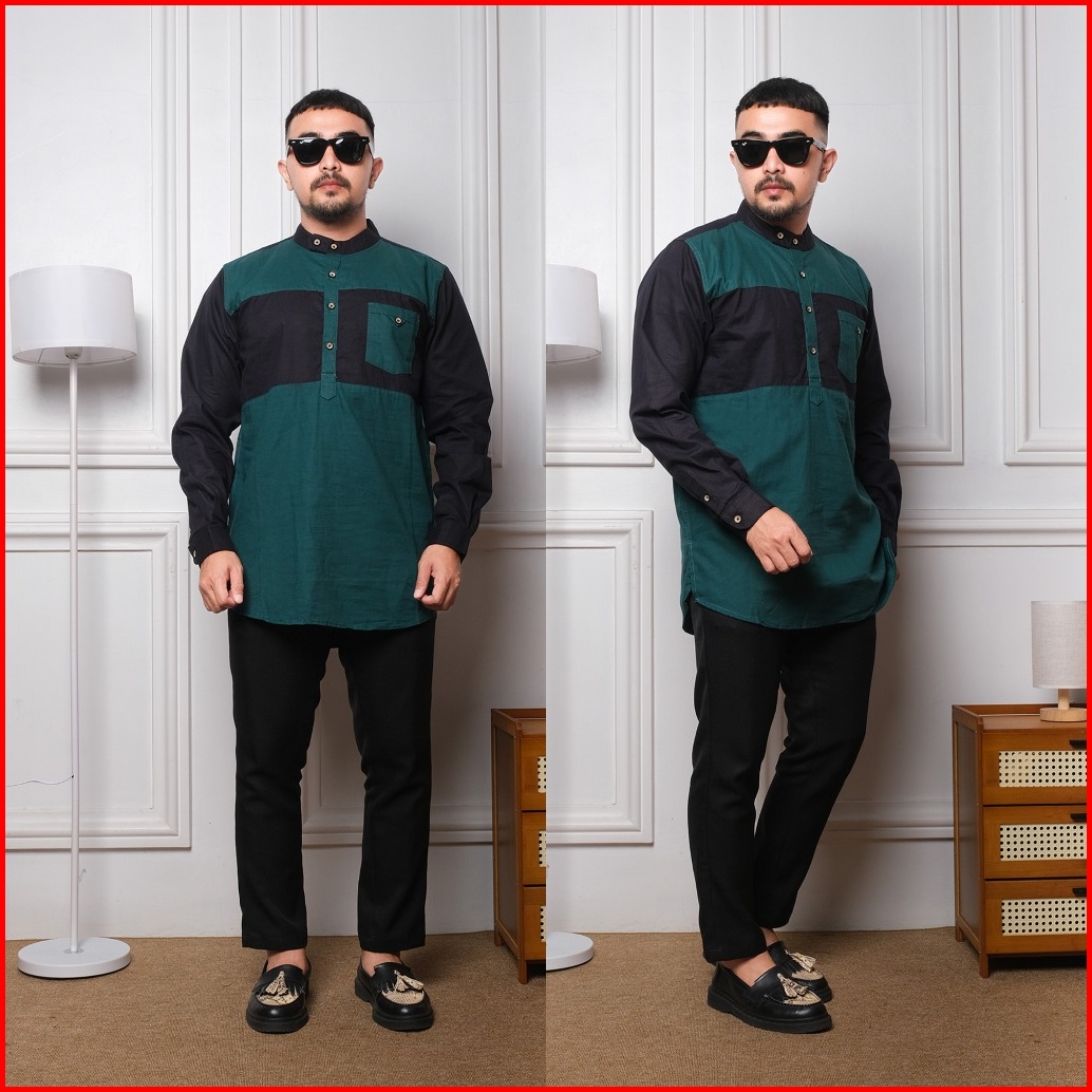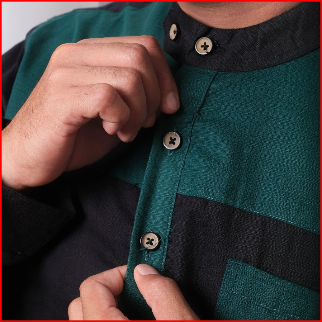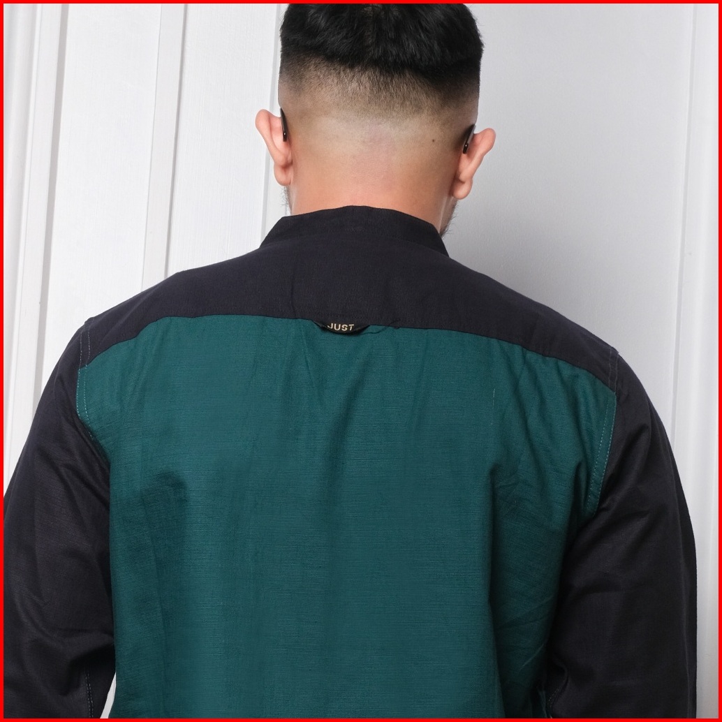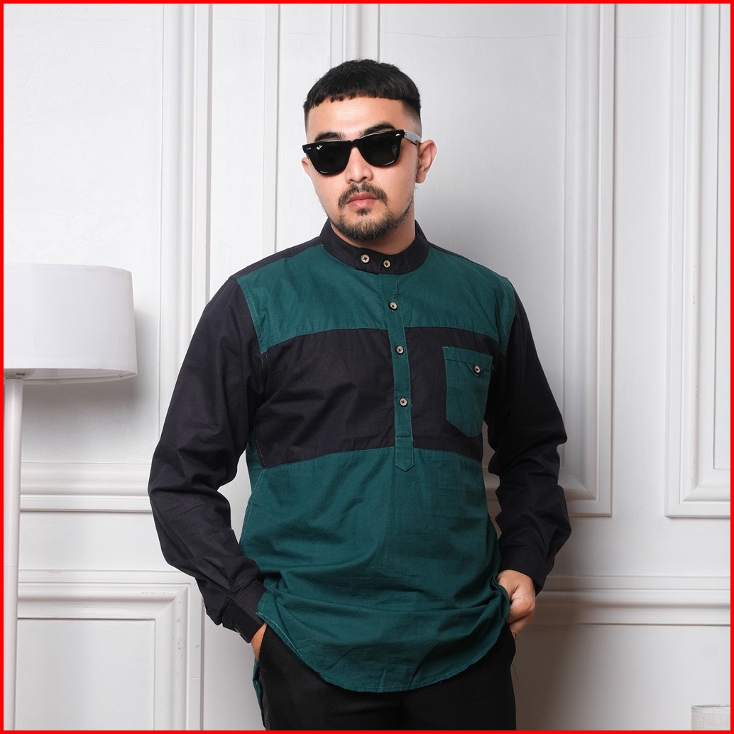 Dgm Fashion Baju Koko Pria Lengan Panjang Combinasi Hitam - Hijau 6750