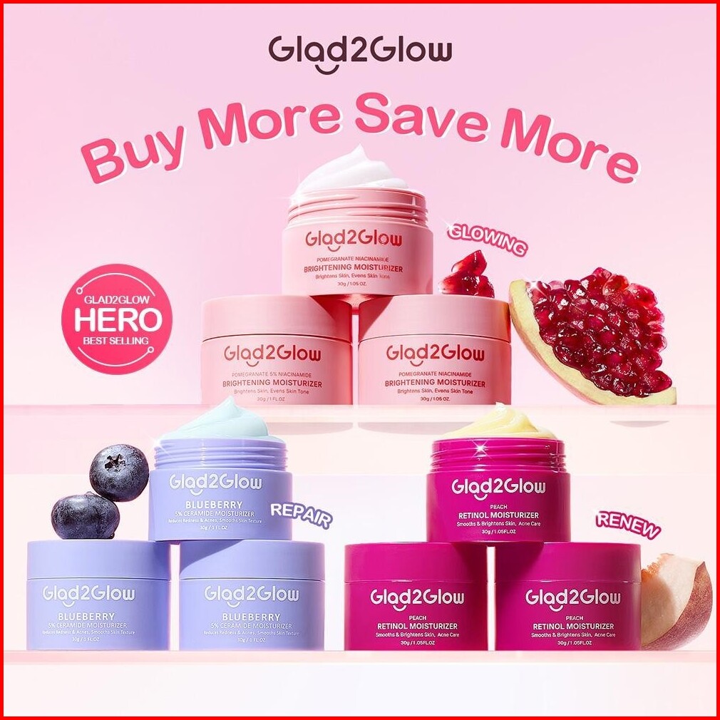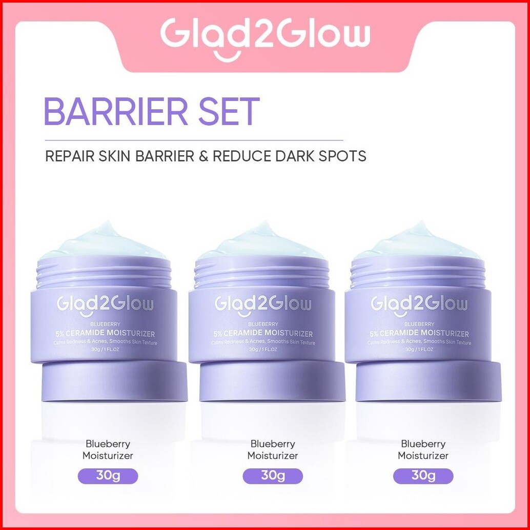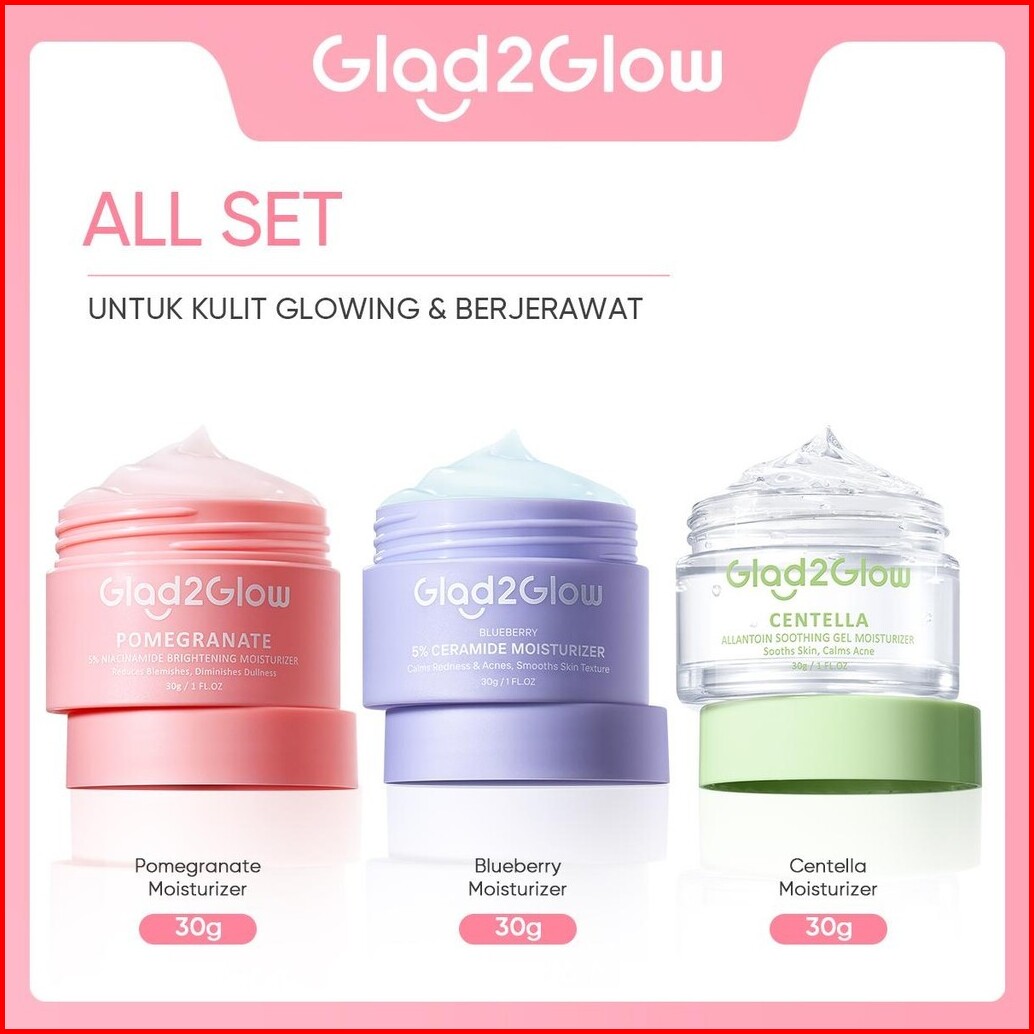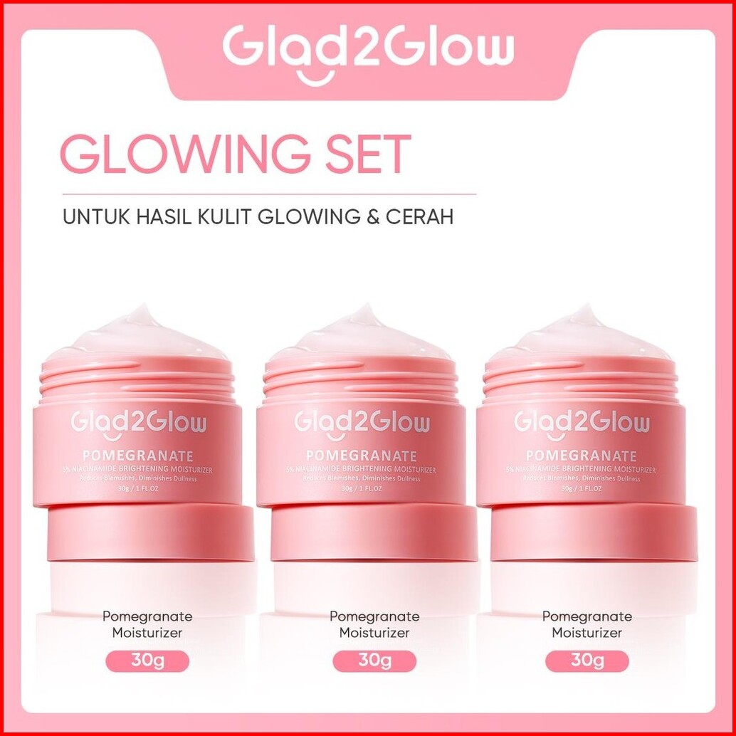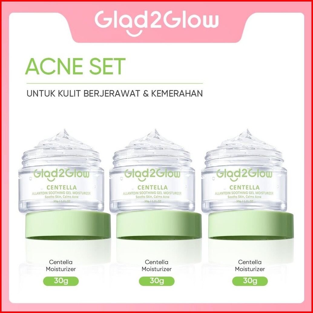 3pcs Paket Glad2glow Moisturizer 3pcs Skincare Set -acne Kit Glowing Kit Dark Spot Gift Set Berjerawat Ceramide Exfoliat