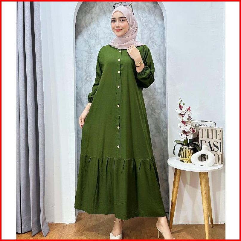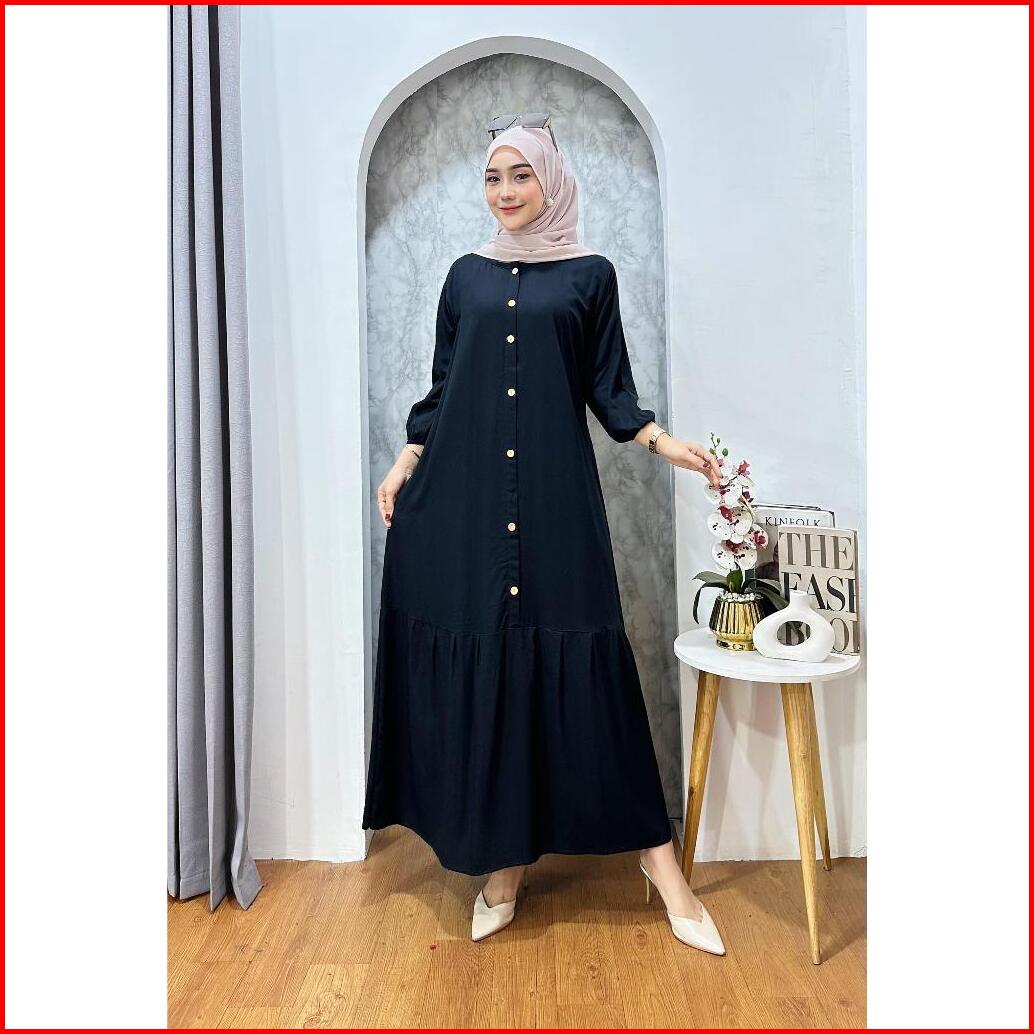 Gamis Wanita Rayon Polos Rampel Busui Maxi Ld 110cm-dress Terbaru