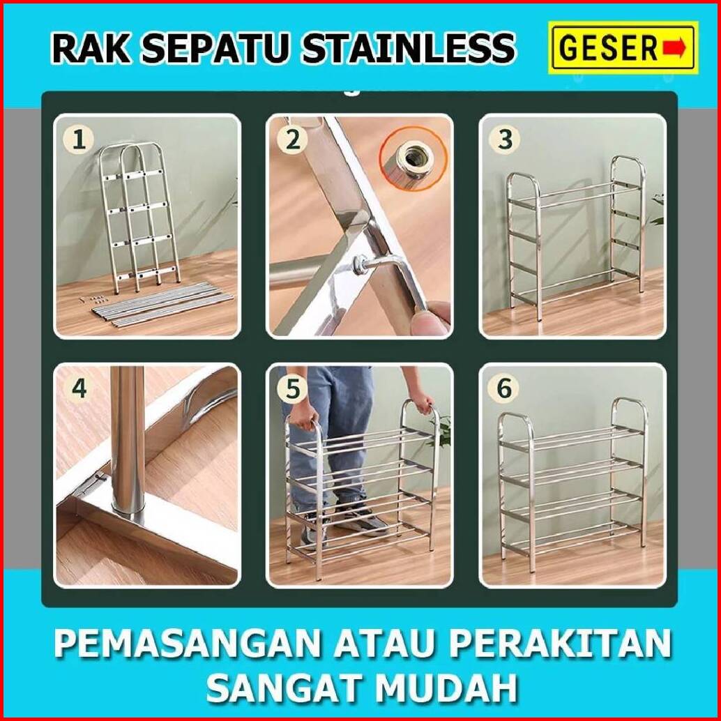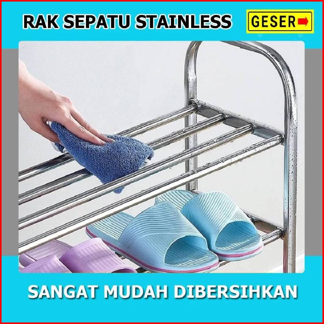 Rak Sepatu 4 Susun Dan 5 Tingkat Tempat Penyimpanan Sandal Estetik Serbaguna Stainless Steel