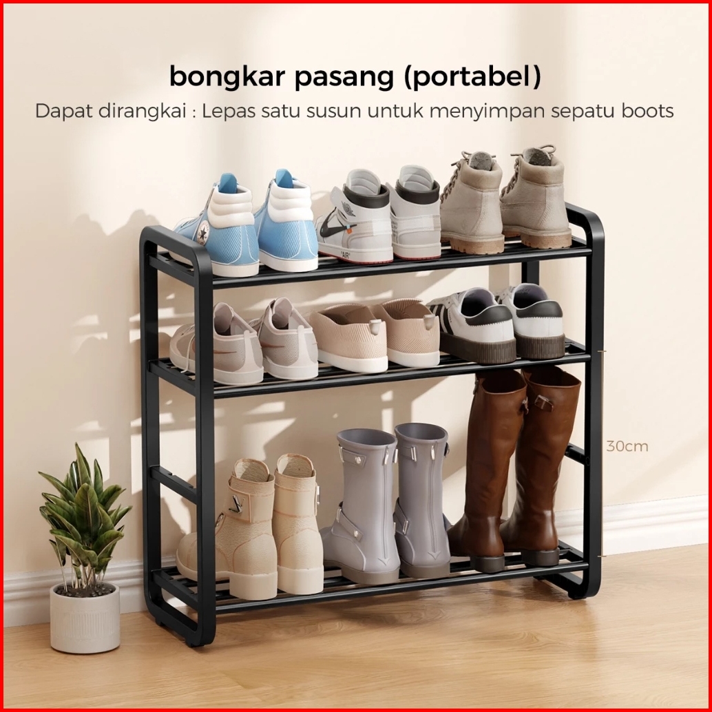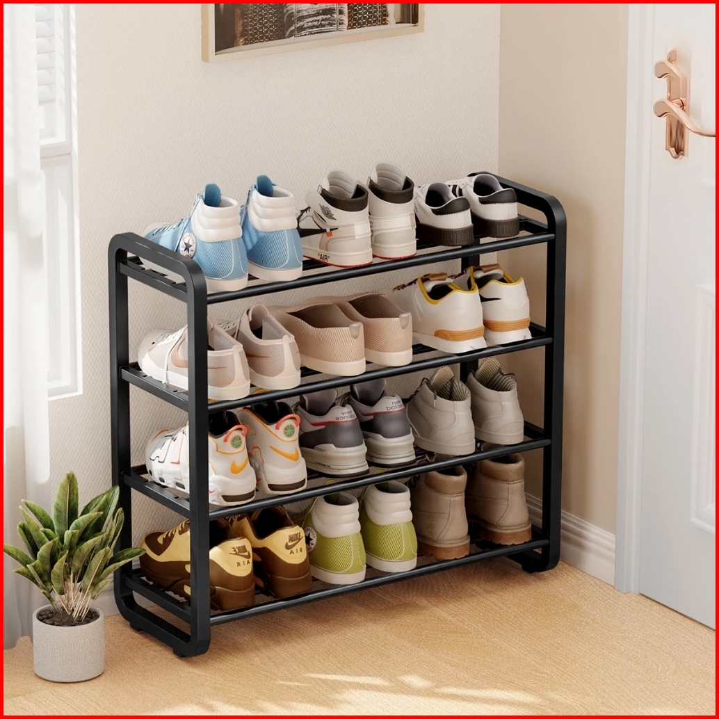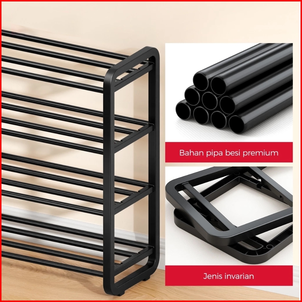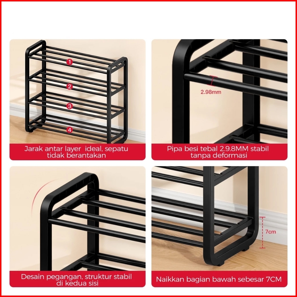 Rak Sepatu Besi Kuat Tebal Rak Sepatu 4 Susun Minimalis Tempat Sepatu Rak Sandal Dan Sepatu