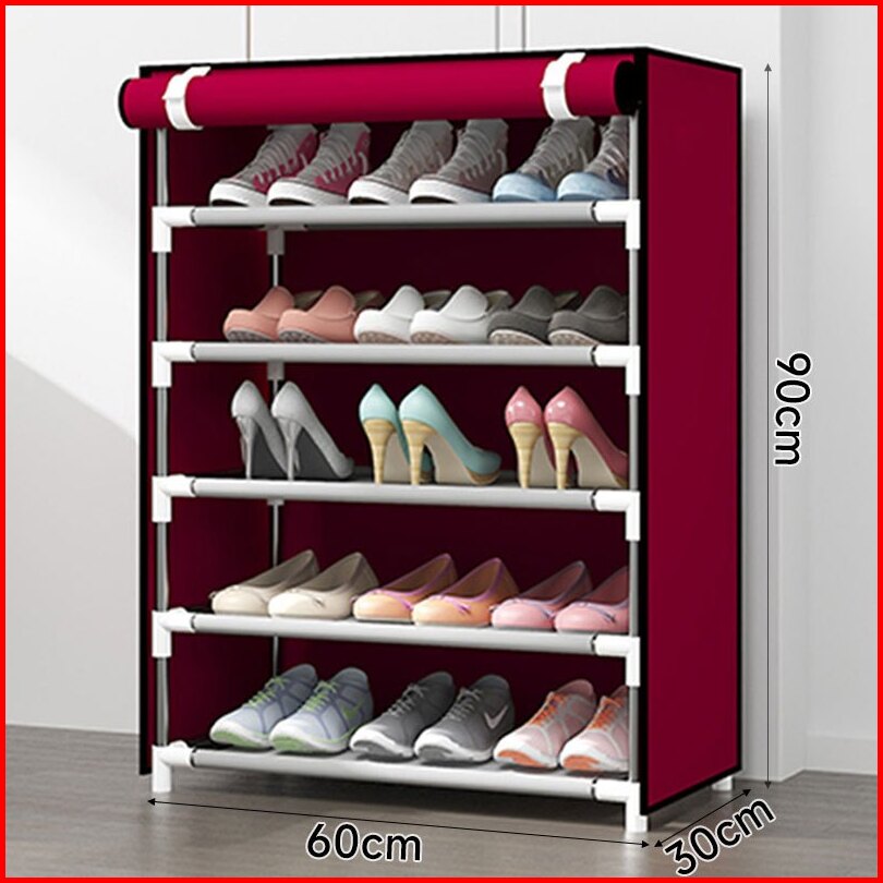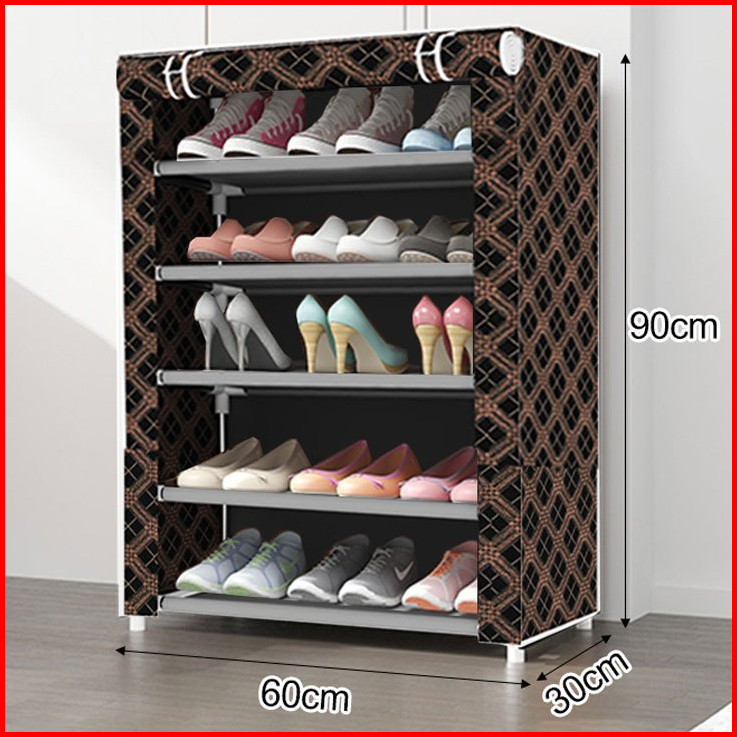 Okasumi Rak Sepatu Kain 5 Susun Portable Multifungsi Tahan Debu Menghemat Ruang Shoe Rack Rumah Tangga Sederhana