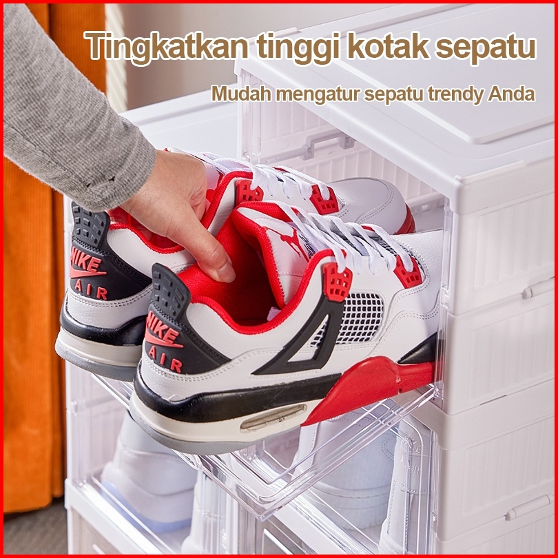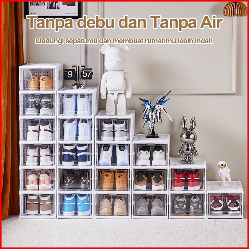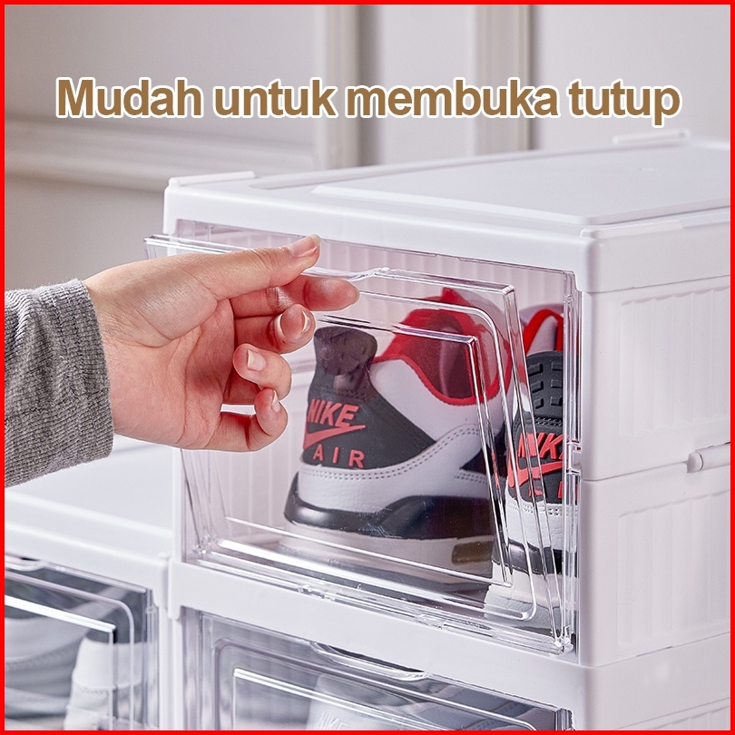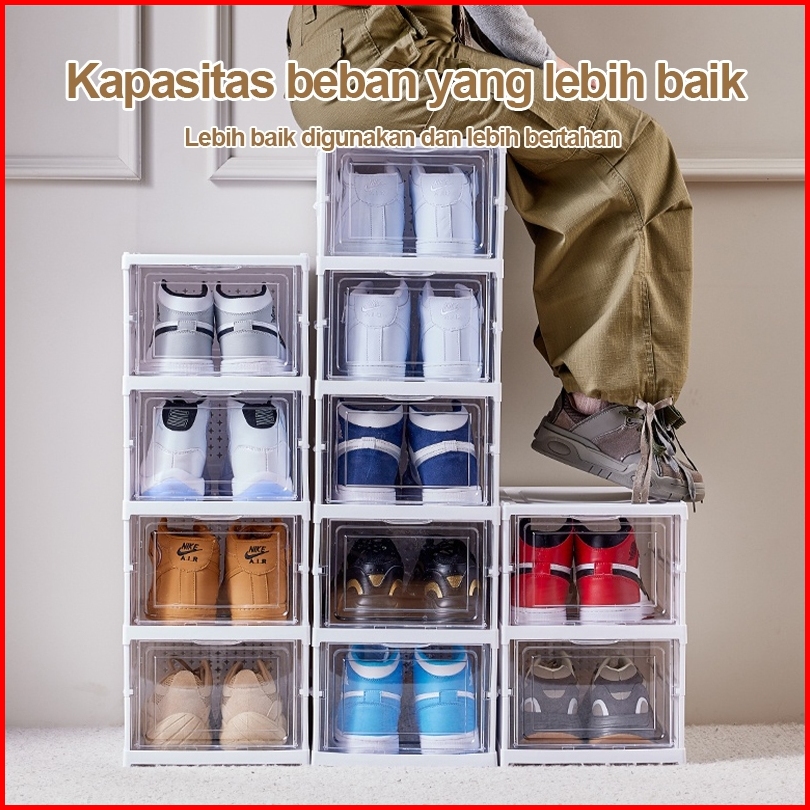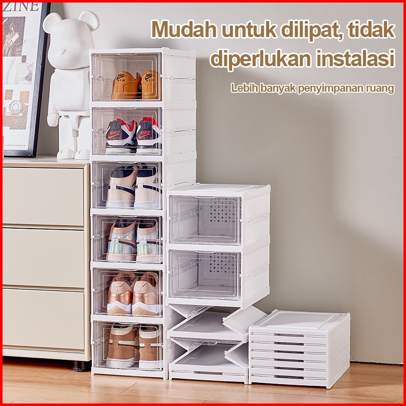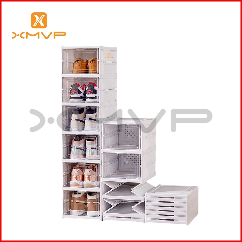 Xmvp Rak Sepatu Lipat Anti Debu Kotak Sepatu Lipat Rak Susun Sepatu Anti Debu Box Sepatu Stackable Plastic Tebal Lemari