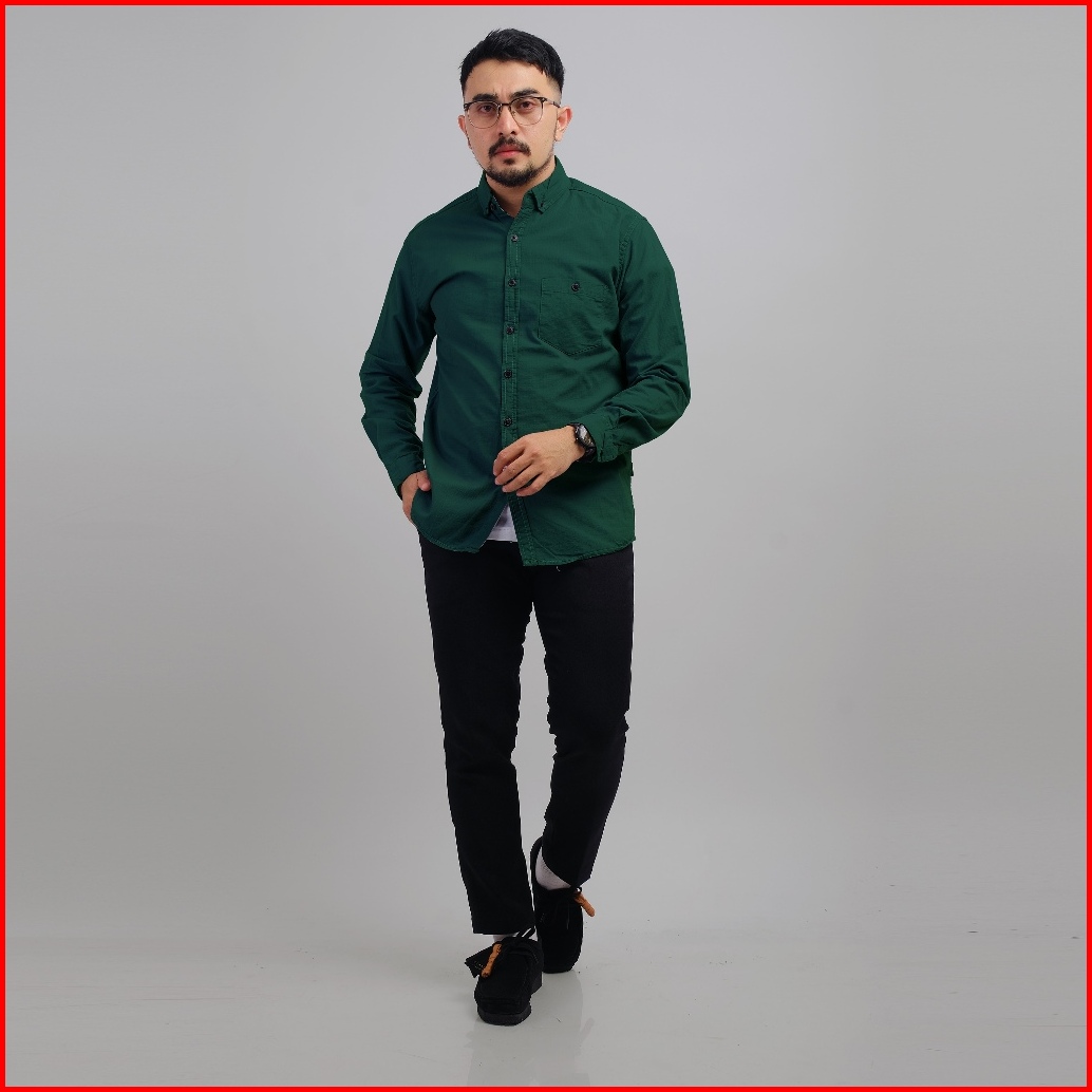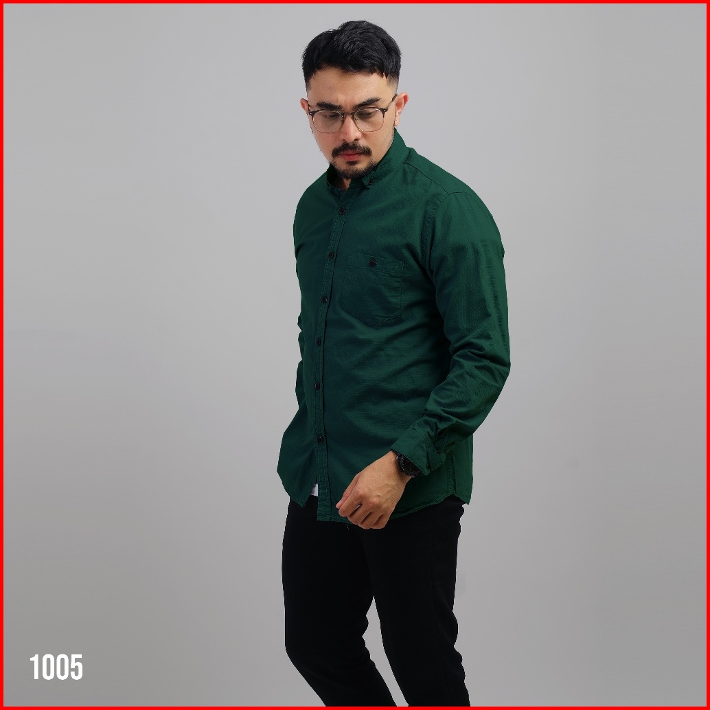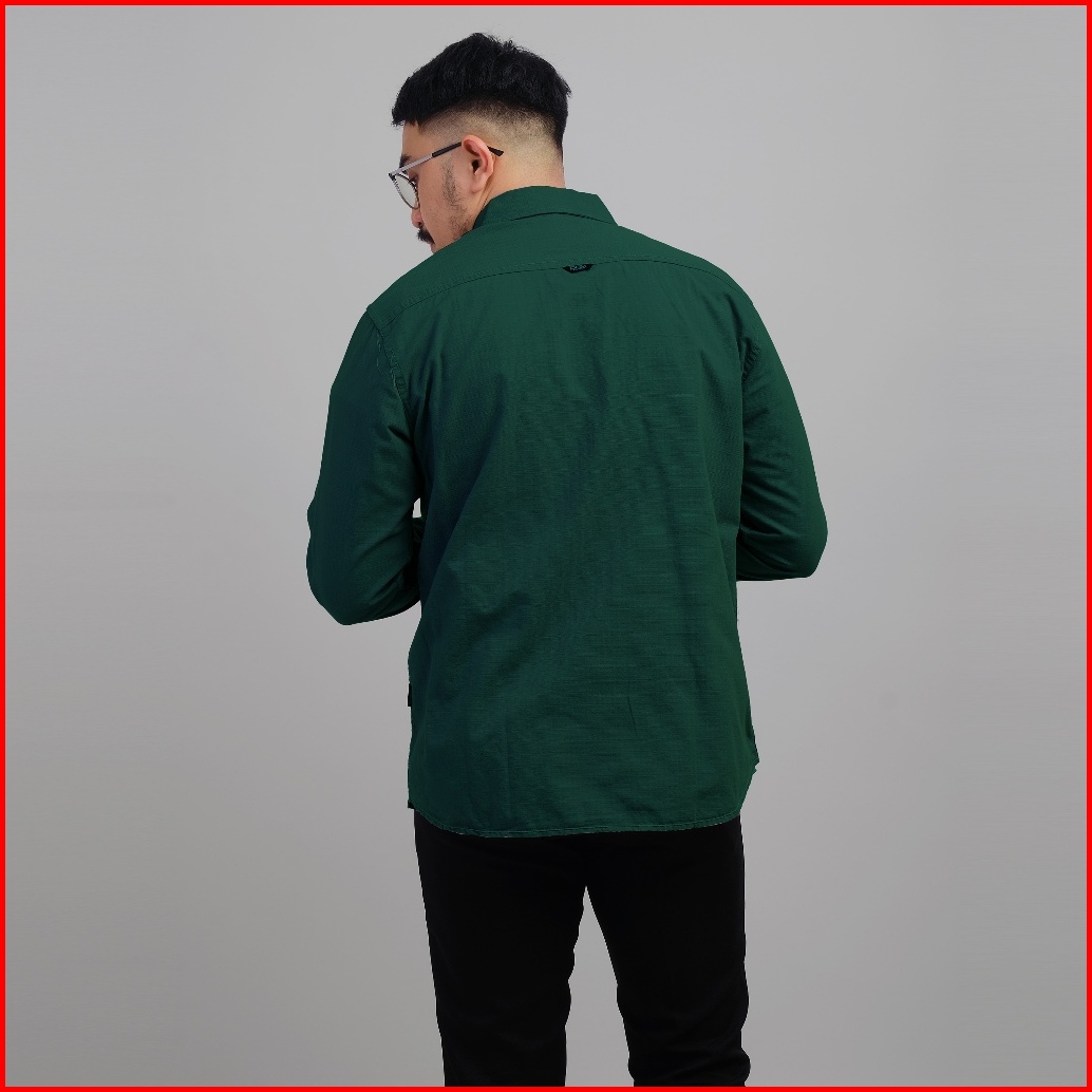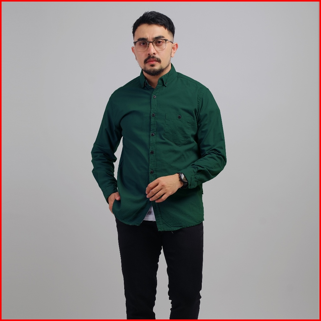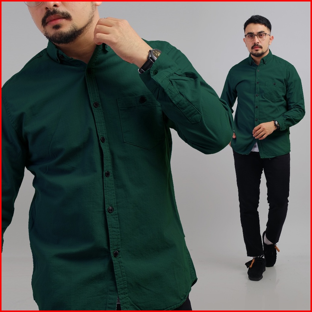 Dgm Fashion Kemeja Pria Basic Polos Lengan Panjang Bootle Green 1005