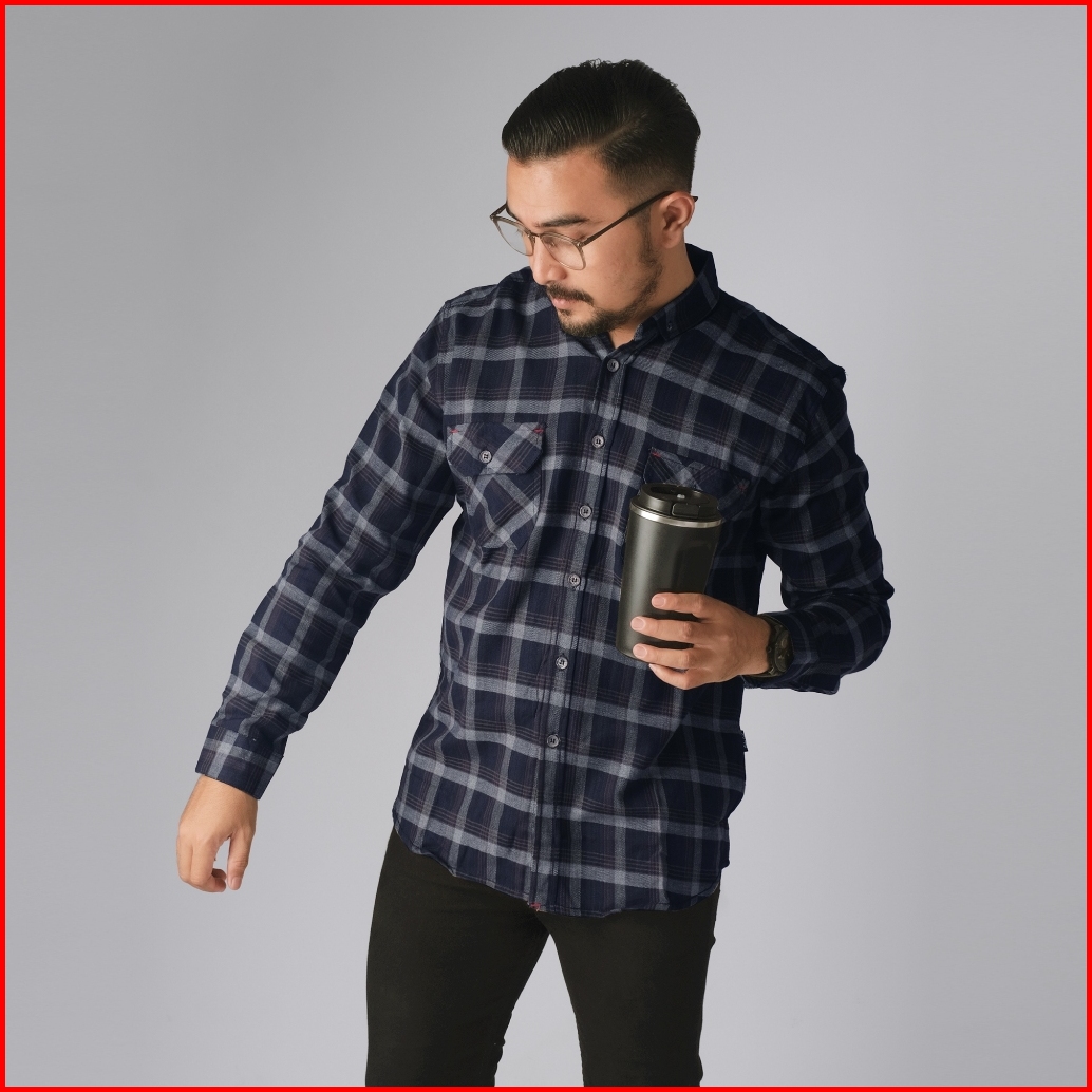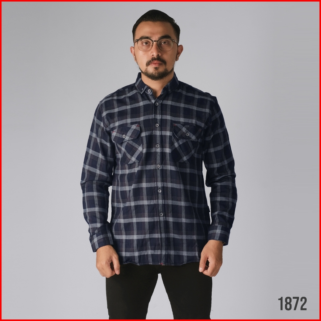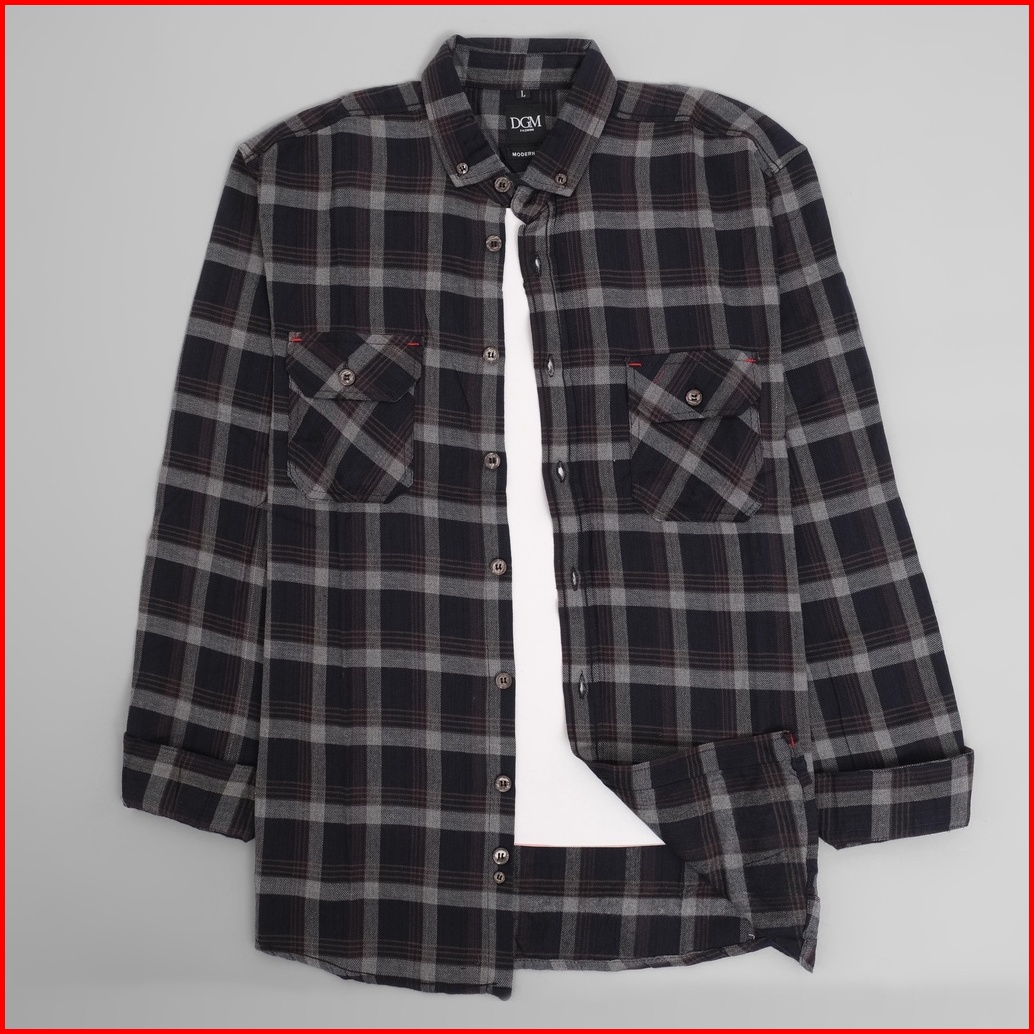 Dgm Fashion Kemeja Pria Flanel Double Pocket Lengan Panjang Premium Flanel Kantong Dua 1872