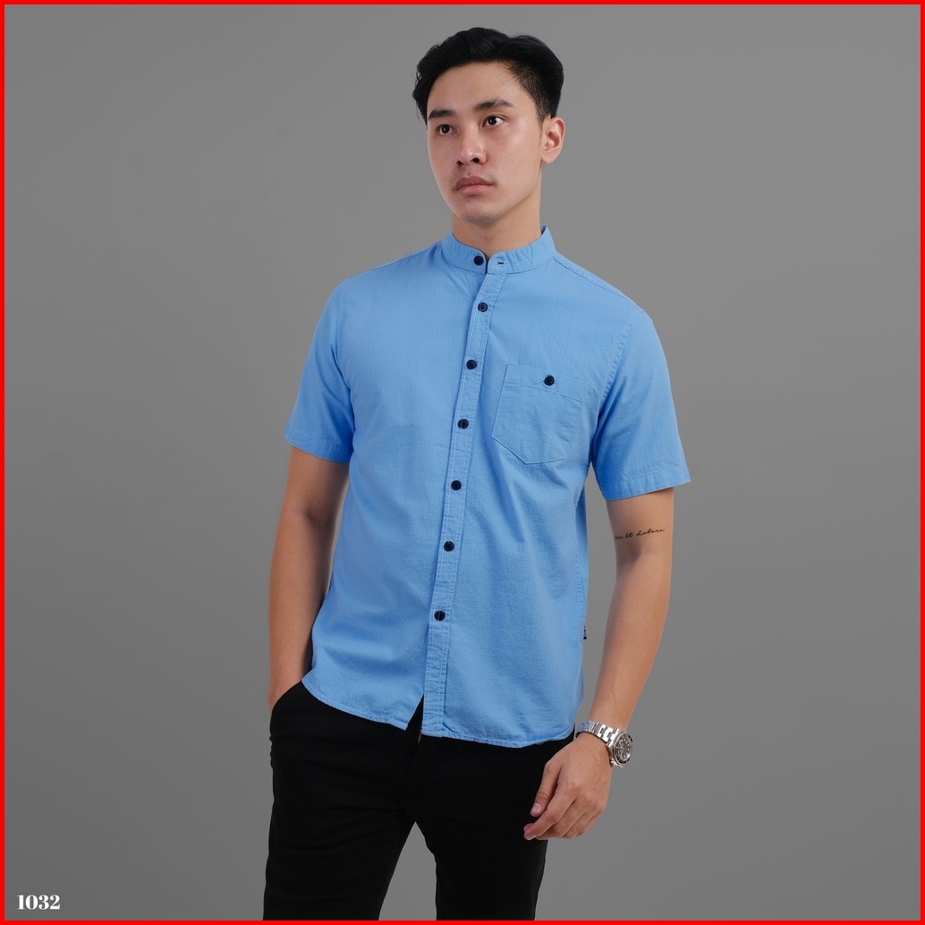 Dgm Kemeja Pria Basic Polos Pendek Baby Blue Premium 1032