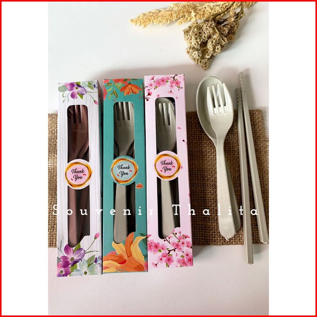 Isi 50pcs Souvenir Pernikahan Satu Set Sendok Garpu Sumpit Lokal Kemas Box Motif Cantik