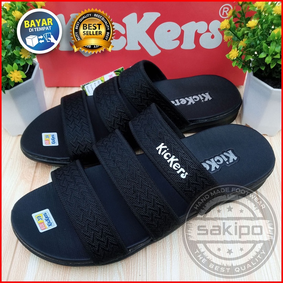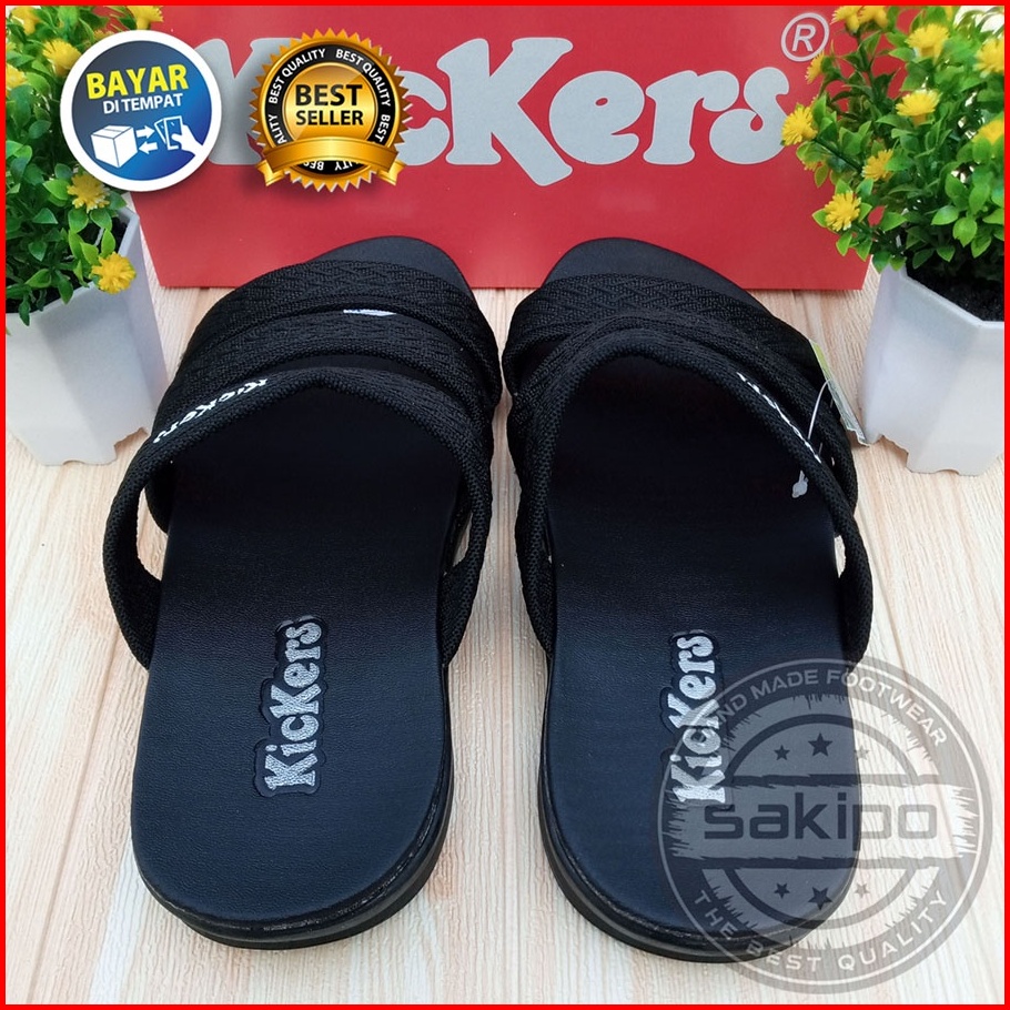 Sandal Pria Dewasa Kickers Slop Bisban Hitam Sendal Slide Cowok Distro Sandal Slop Murah Sakipo