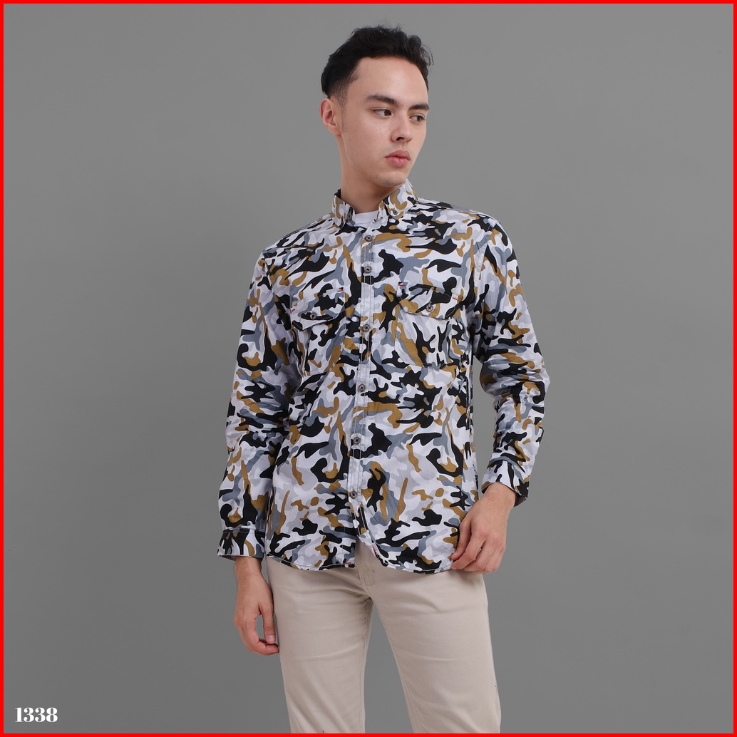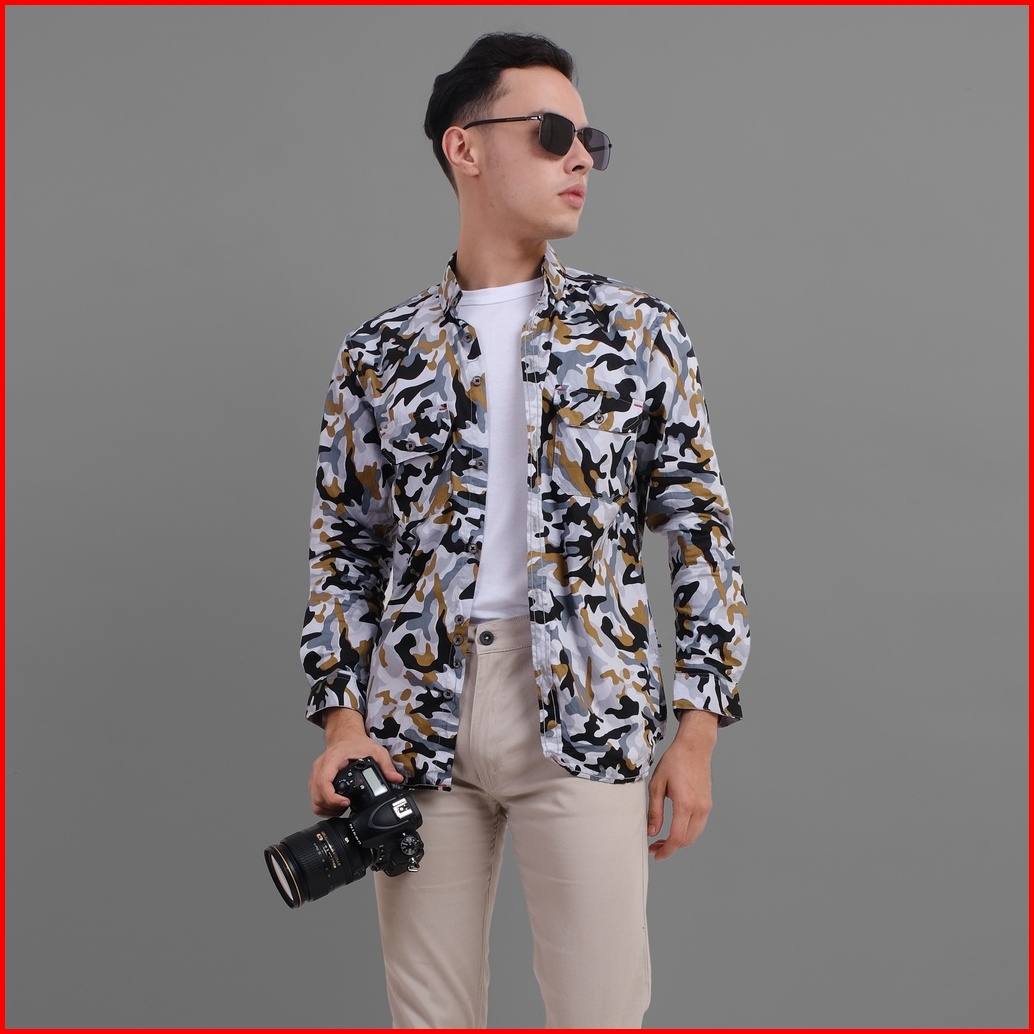 Dgm Fashion Kemeja Pria Loreng Lengan Panjang Kemeja Kantong Dua Kemeja Loreng 1338