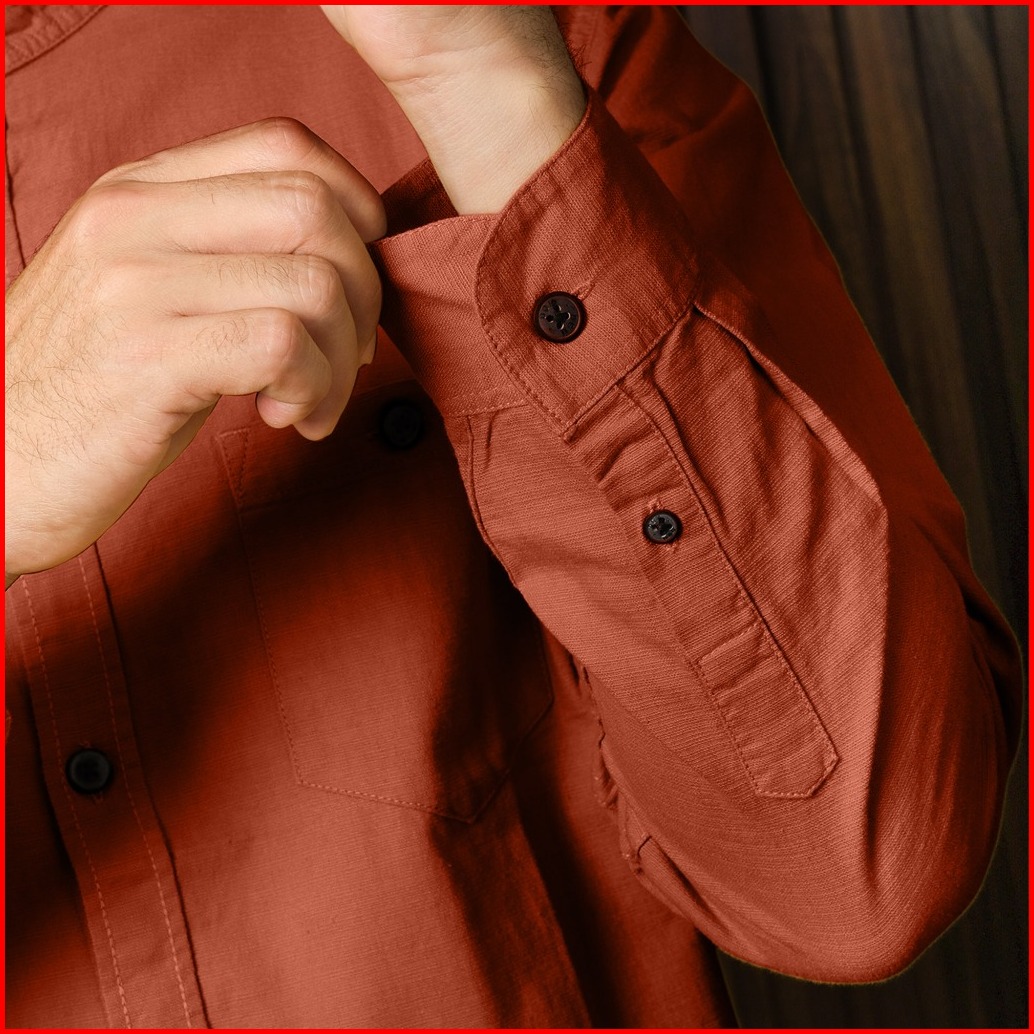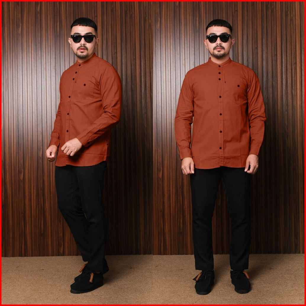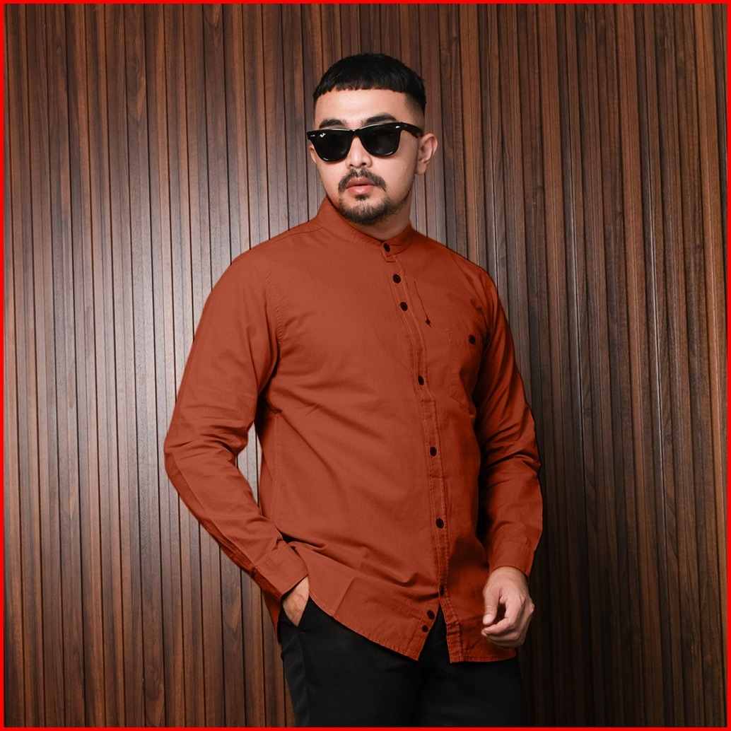 Dgm Kemeja Sanghai Pria Polos Lengan Panjang Orange 1030