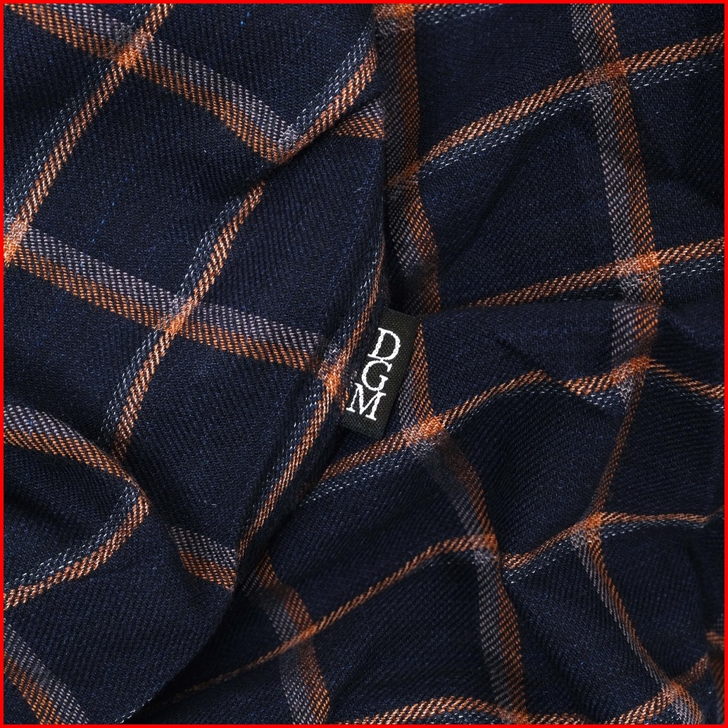 Dgm Kemeja Flanel Pria Lengan Panjang Casual Navy Garis Abu-coklat 1531