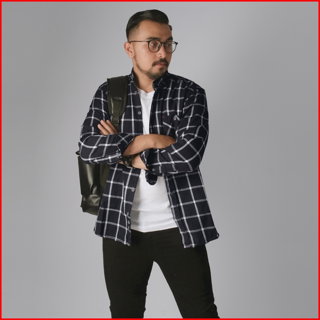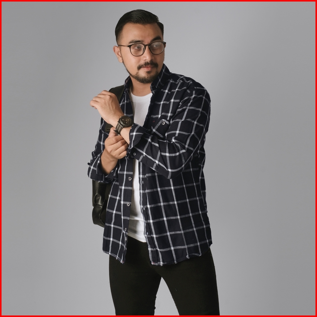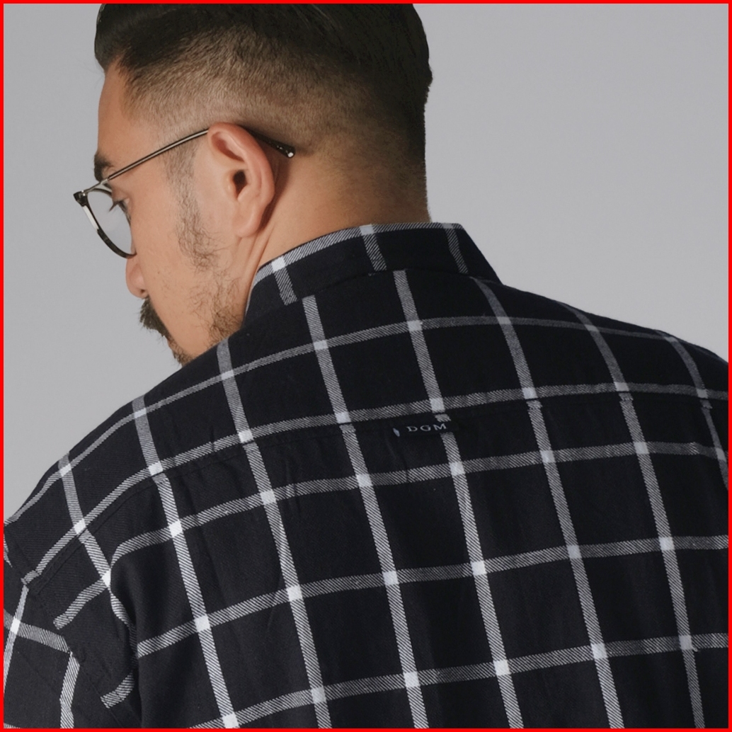 Dgm Kemeja Flanel Pria Lengan Panjang Premium Hitam Garis Putih 2457