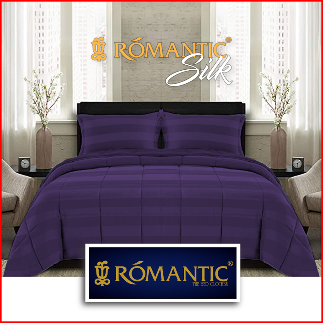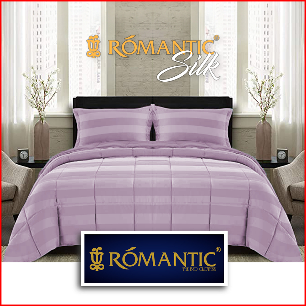 Bedcover Sprei Set Microtensel Ungu By Romantic Silk Motif Salur Micro Lyocell Sutra