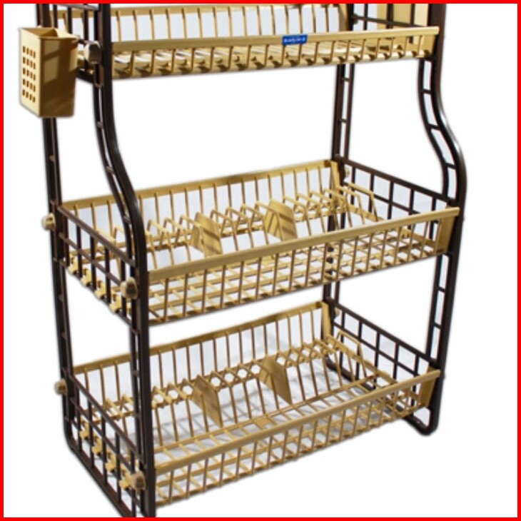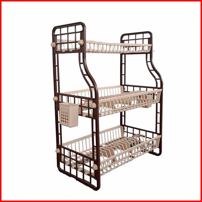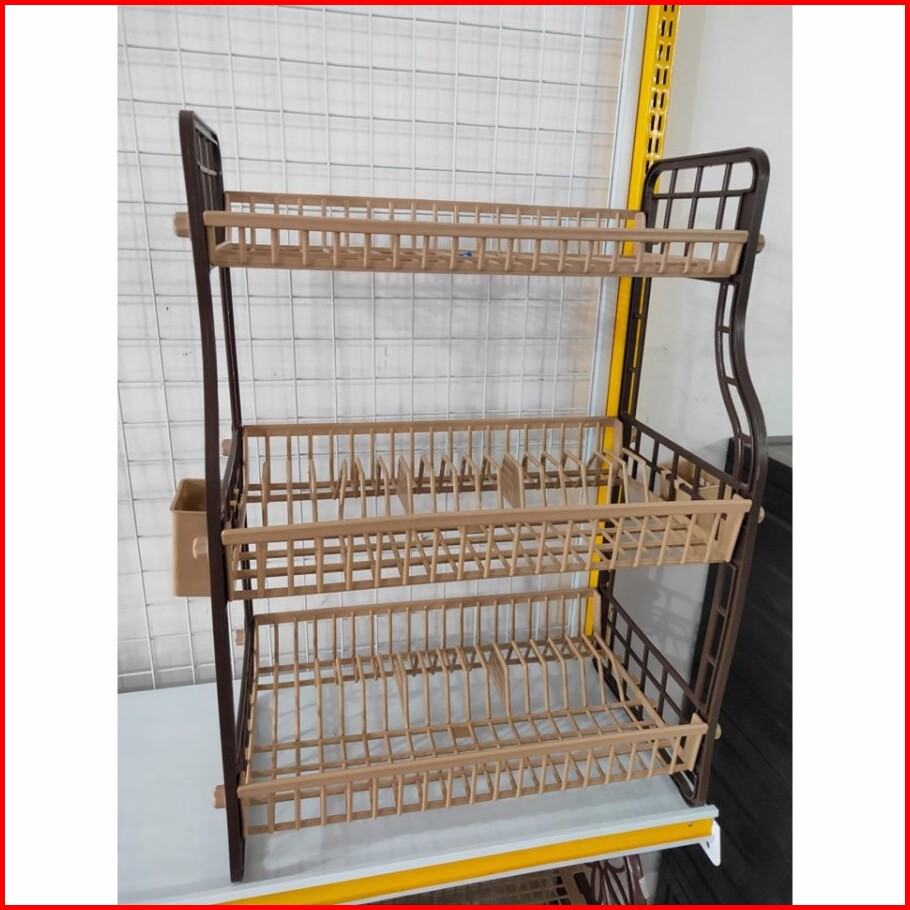 Rak Piring Plastik Tebal Dan Kuat 3 Susun Master Chef Set Tempat Sendok-coklat