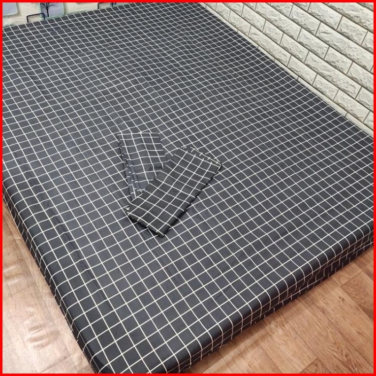 Sprei Aesthetic Korea Motif Kotak 180x200 160x200 120x200 Sprei Homemade Kamar Aesthetic Kotak Abu