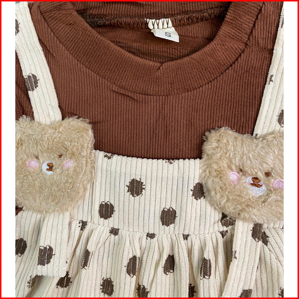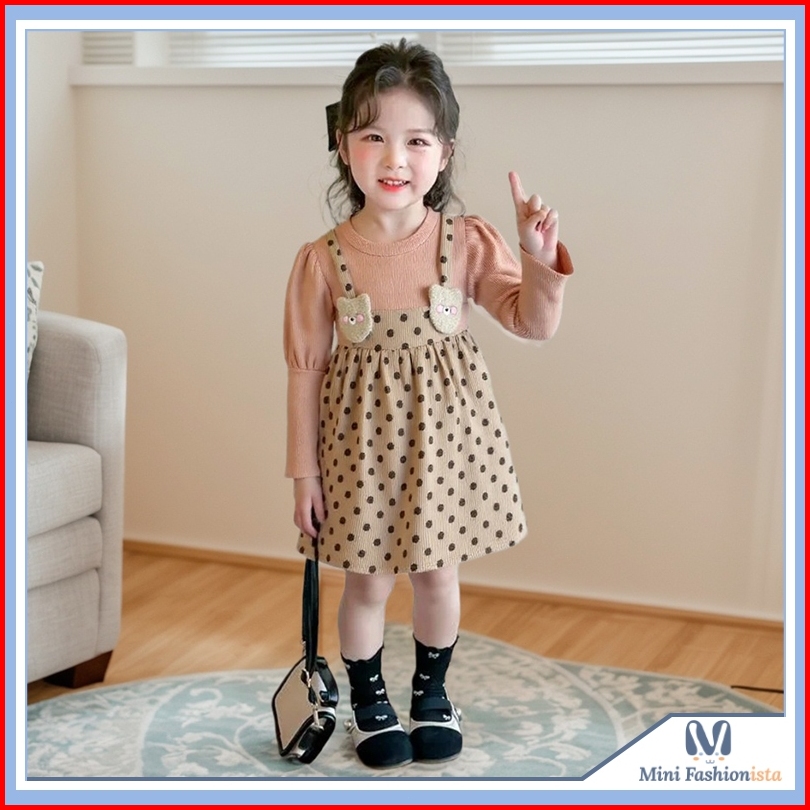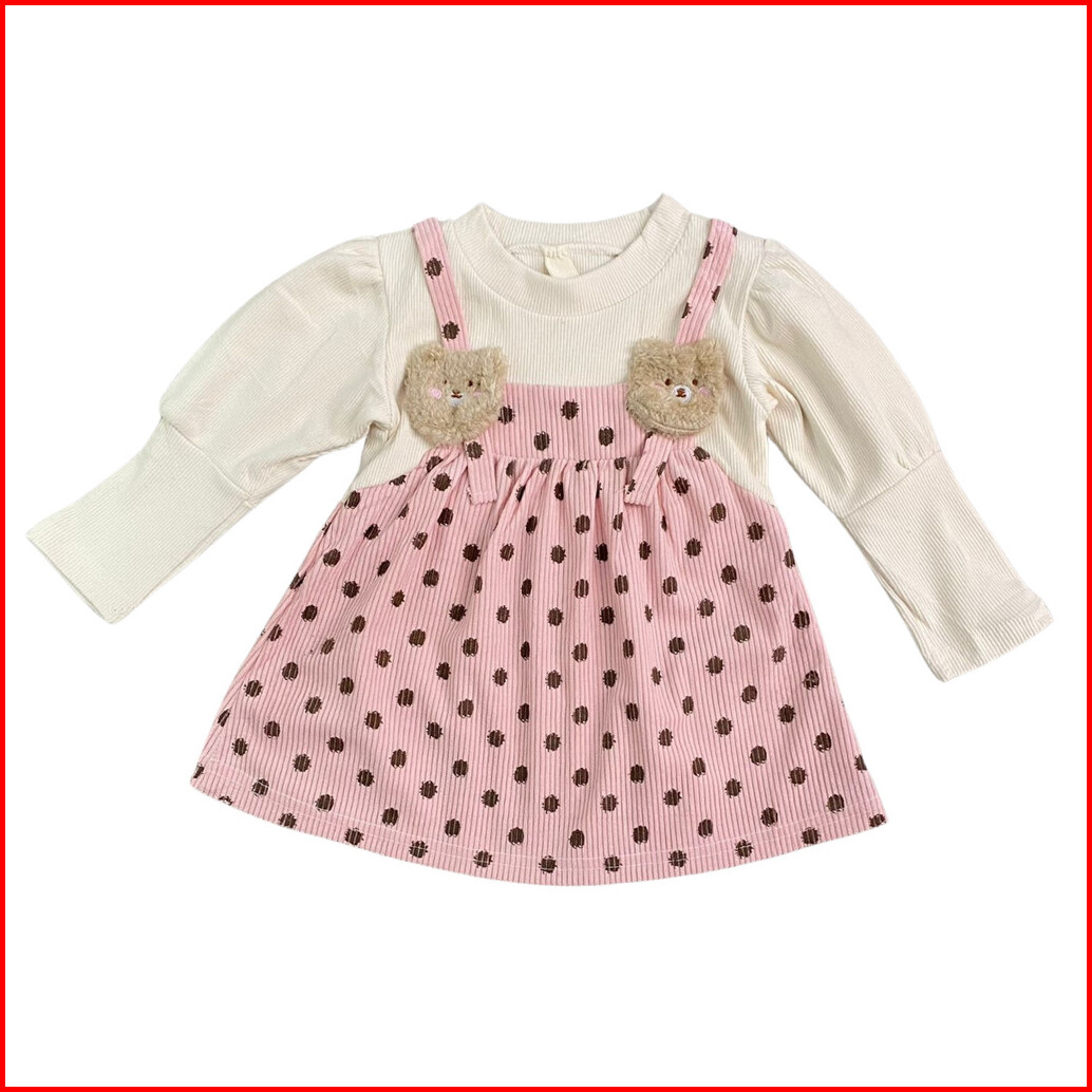 Dress Anak Perempuan Gaun Anak Perempuan Dress Import Anak Perempuan Polkadot Dan Beruang Kecil Usia 0-4 Tahun