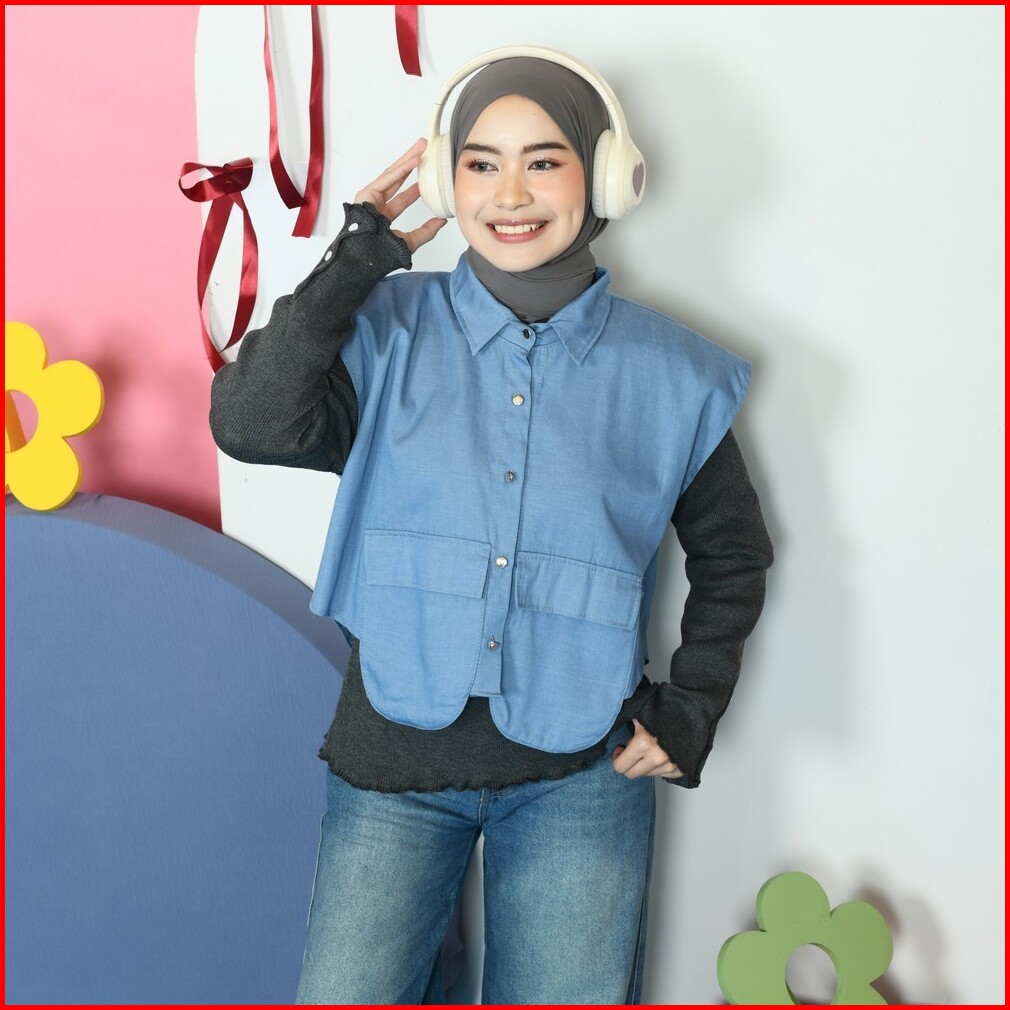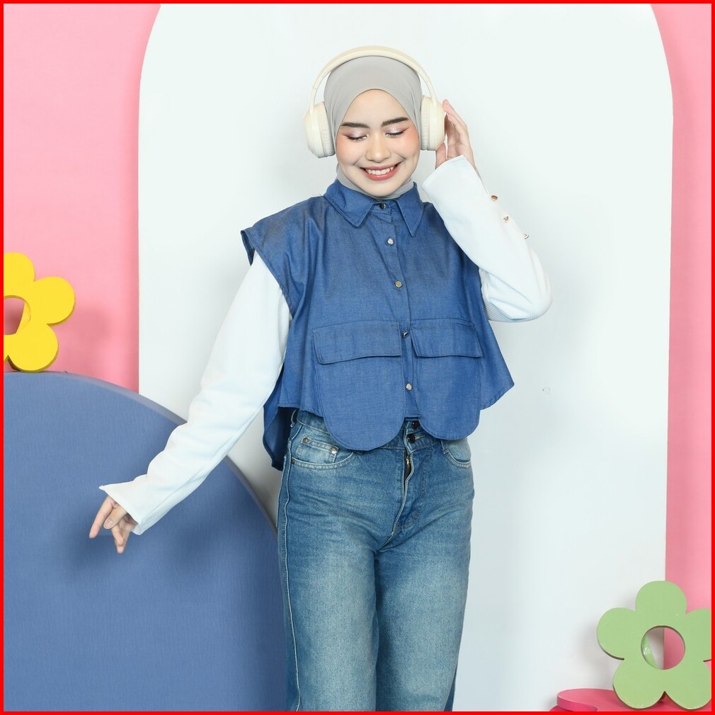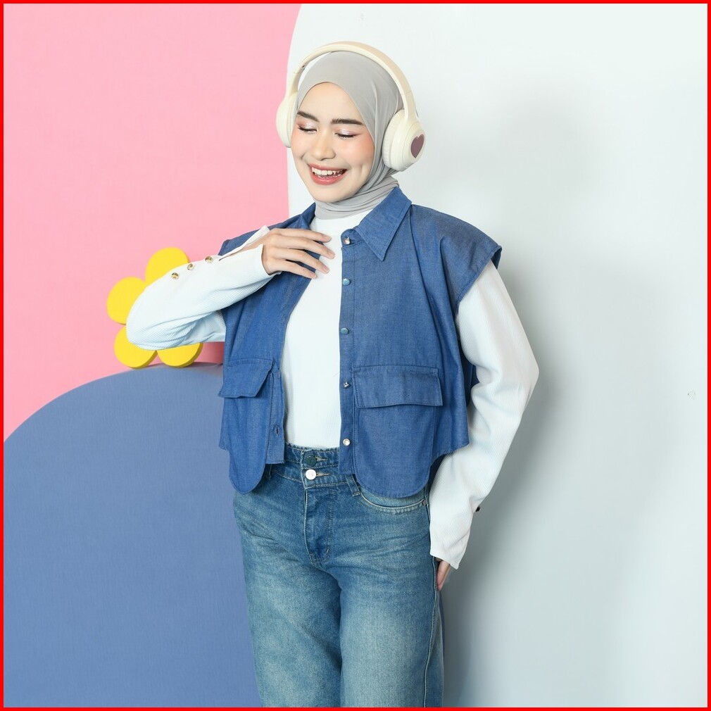 Mybamus Mozy Denim Crop Vest Outer Basic Jeans Kekinian