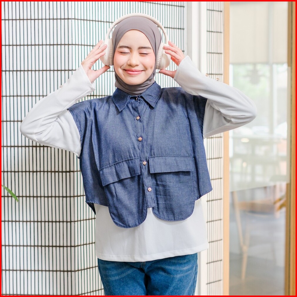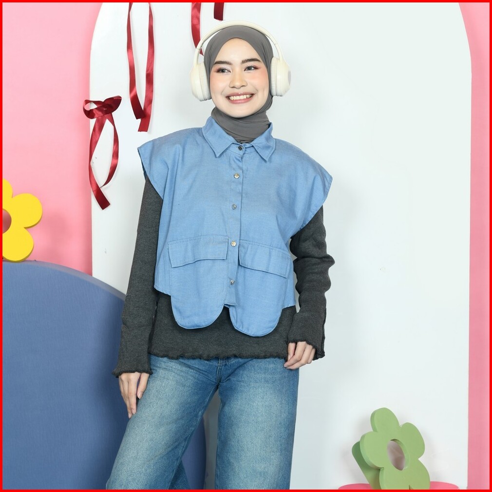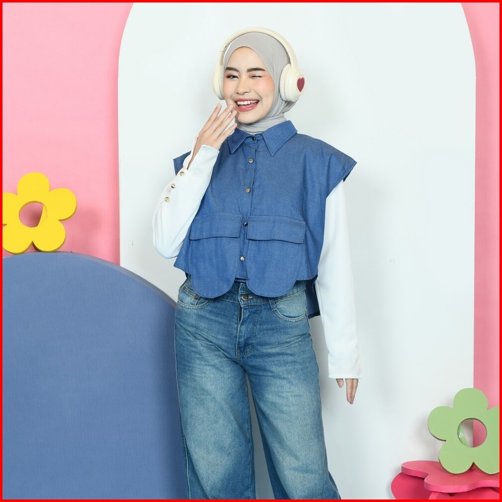 Mybamus Mozy Denim Crop Vest Outer Basic Jeans Kekinian