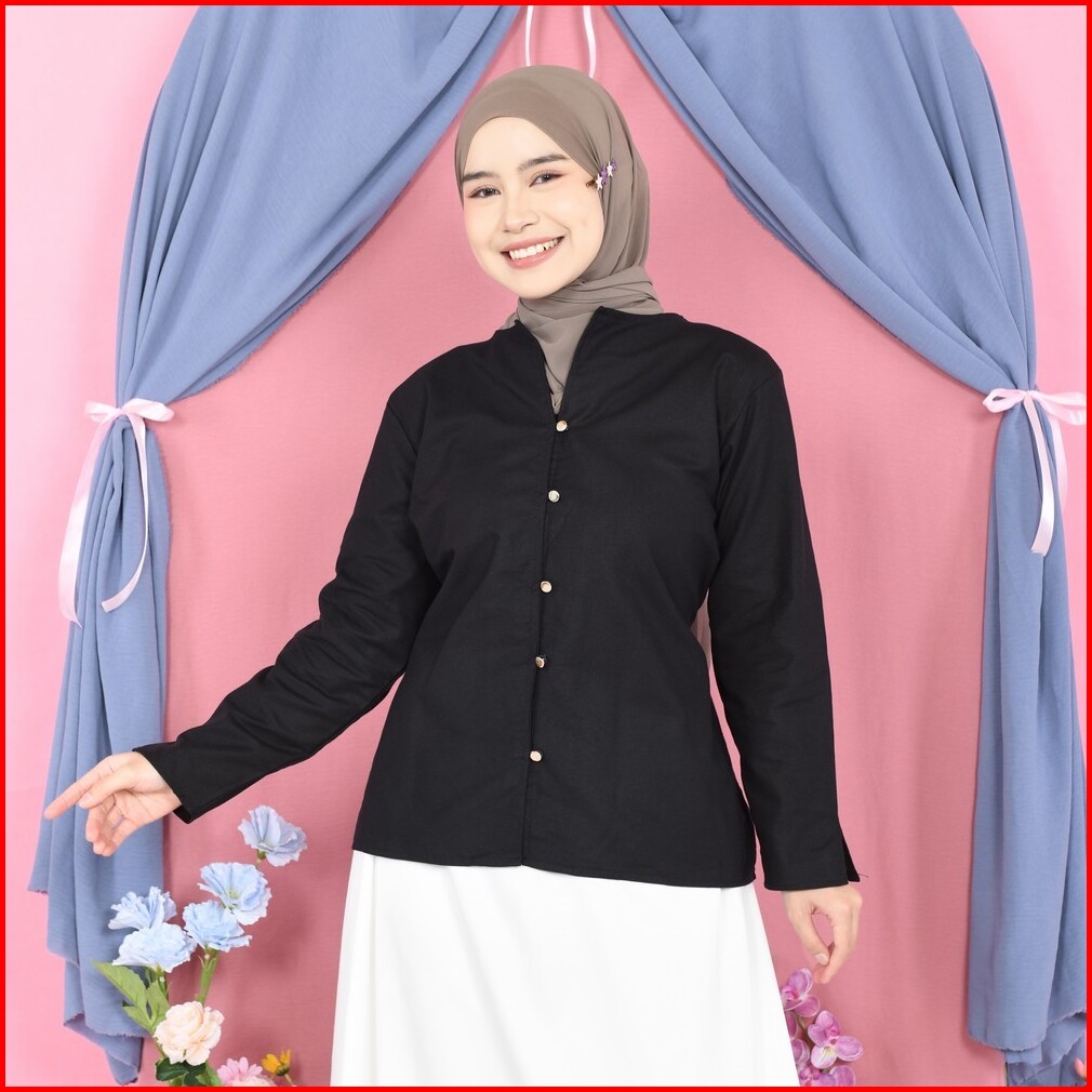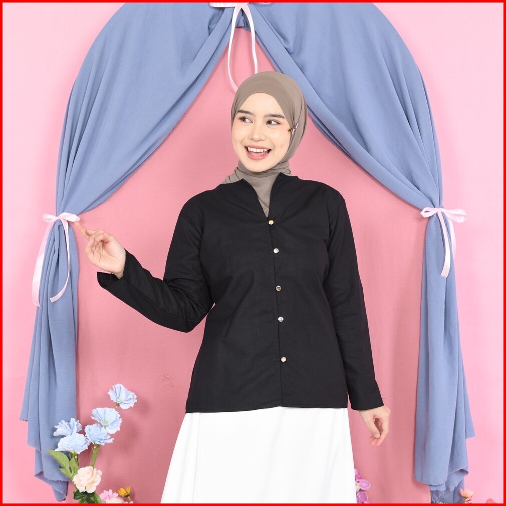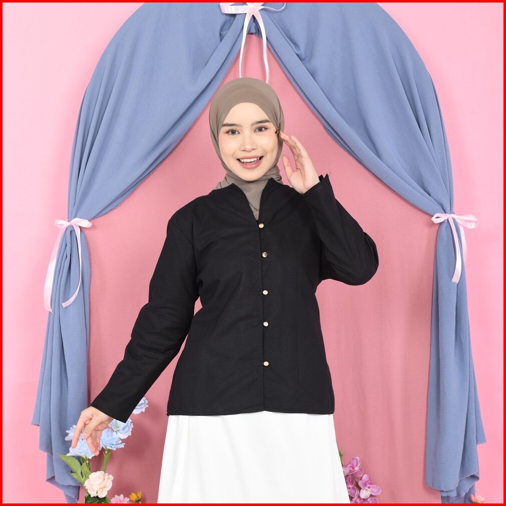 Mybamus Yora Linen Tops Atasan Kancing Lengan Panjang Wanita Kekinian