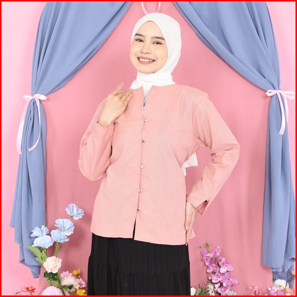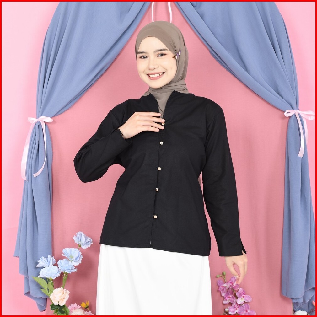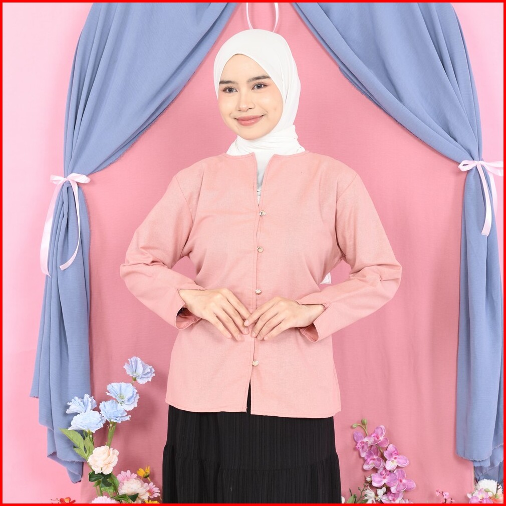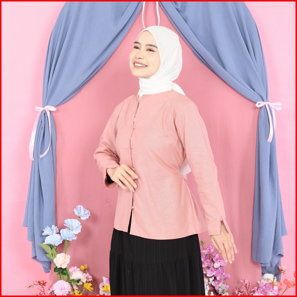 Mybamus Yora Linen Tops Atasan Kancing Lengan Panjang Wanita Kekinian