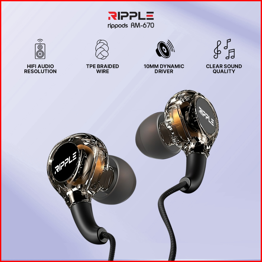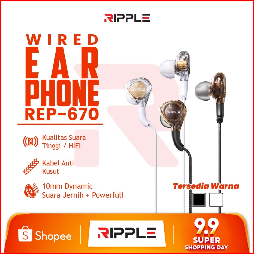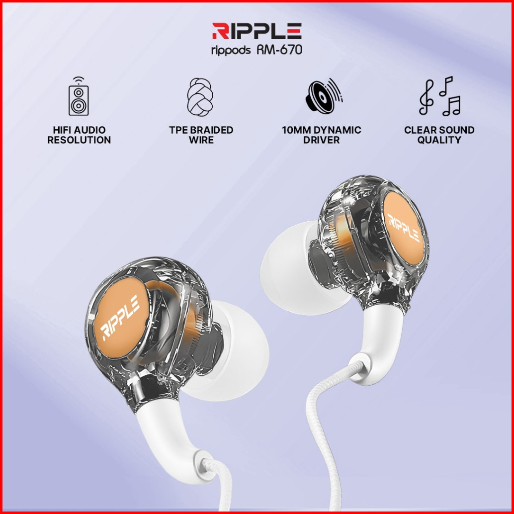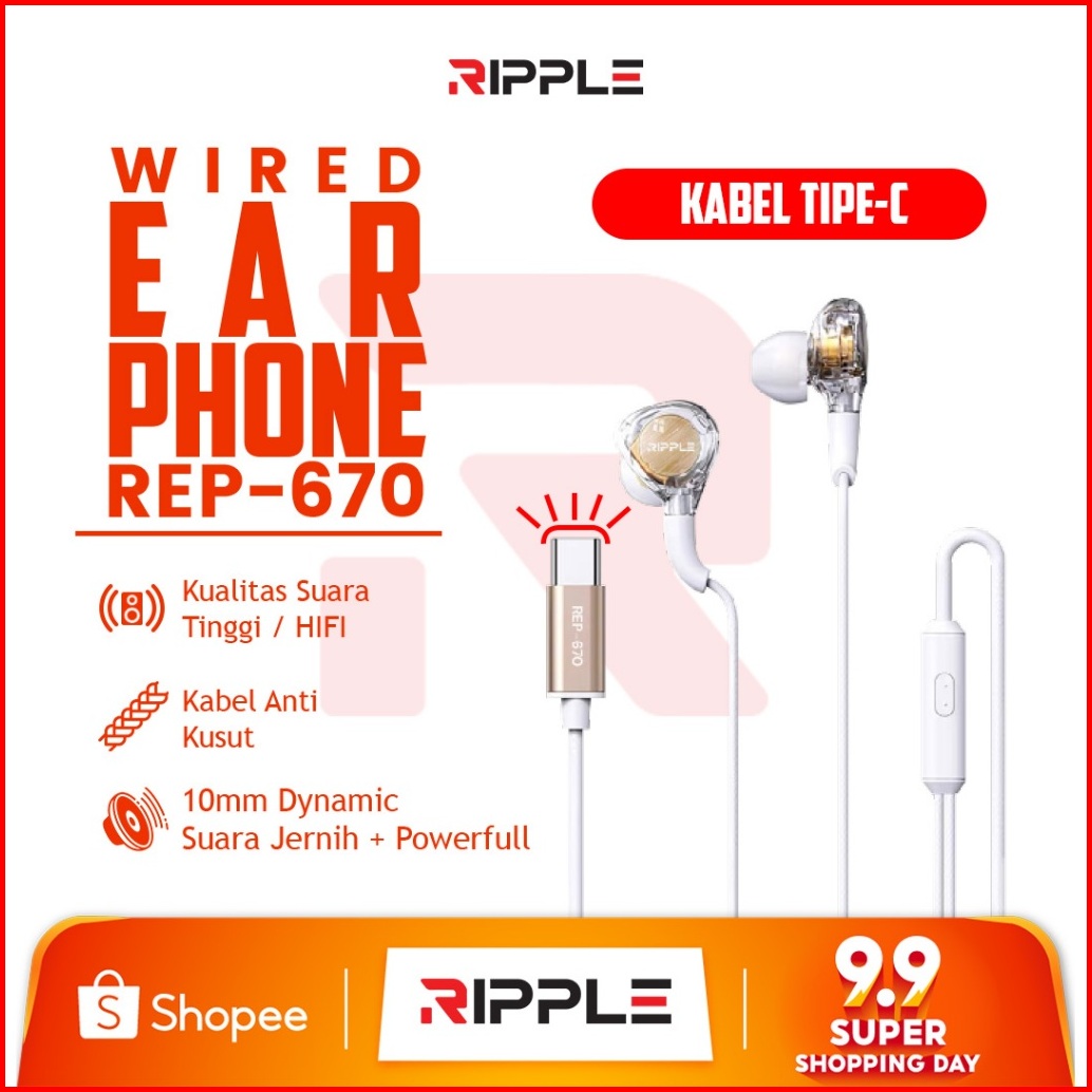 Ripple Rippods Rep-670 Wired Earphone In-ear Music Stereo Mic Surround Stereo Headset Kabel Handsfree 3.5mm Type-c